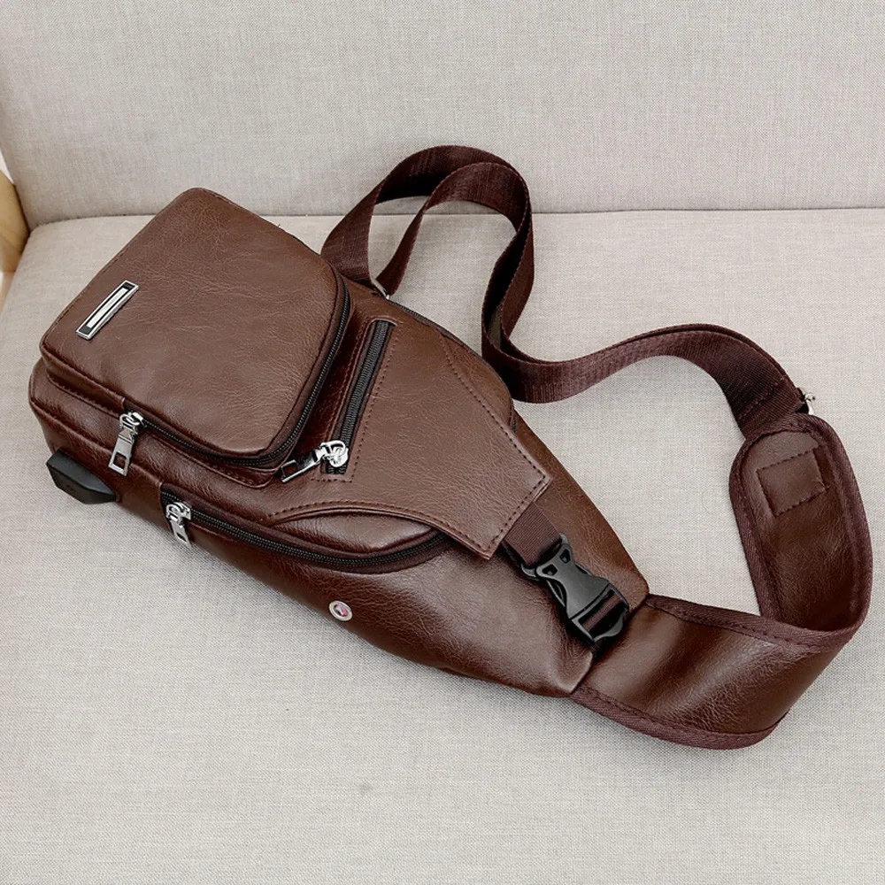 Модная мужская кожаная сумка-слинг 25 #, нагрудная сумка через плеч...