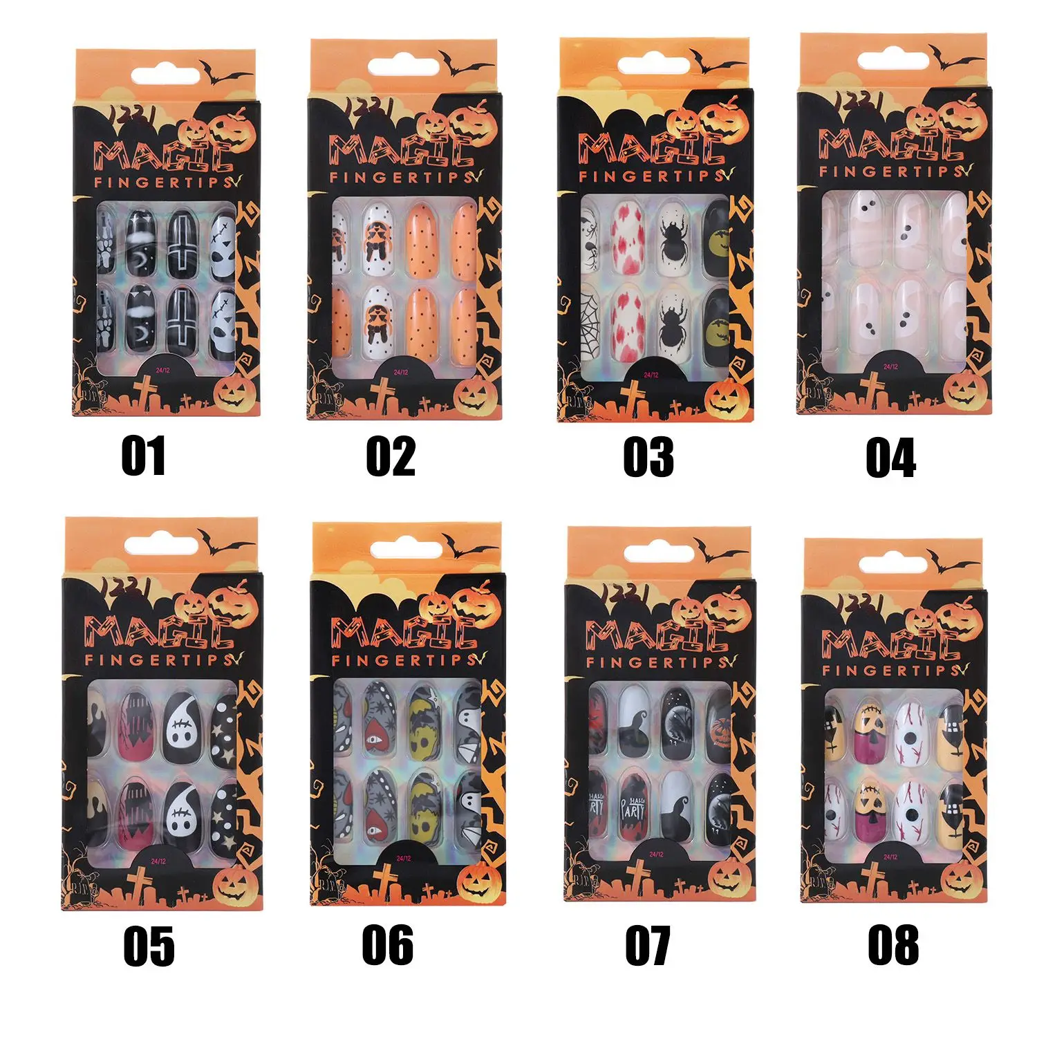 Накладные ногти, 24 шт., для Хэллоуина, длинные, полное покрытие, н...