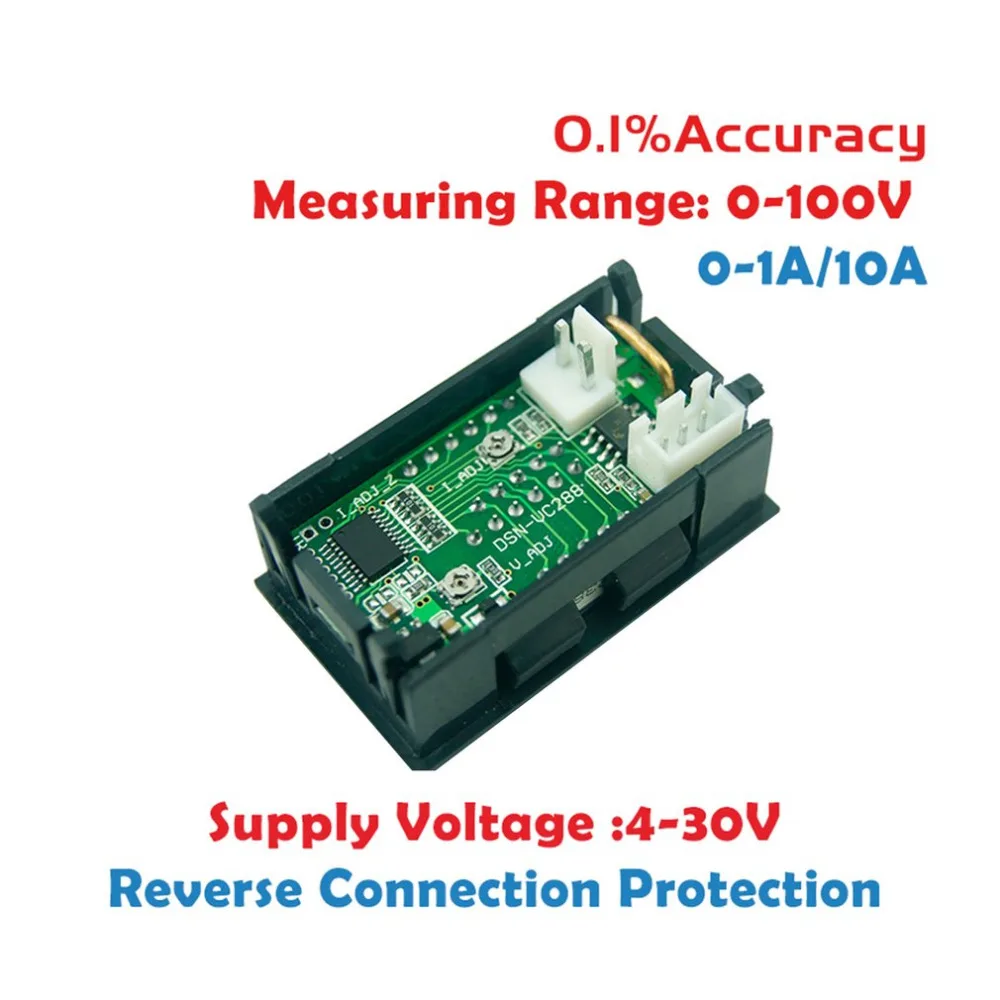 Тестер для автомобиля, цифровой вольтметр, амперметр, измеритель переменного тока 100 В 10A с двойным светодиодным дисплеем 0.56"