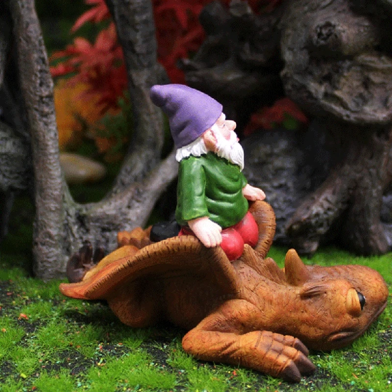 Креативные статуи гнома в виде дракона и динозавра, полимерное украшение, забавные карликовые фигурки, скульптура, миниатюрный декор для сада сделай сам