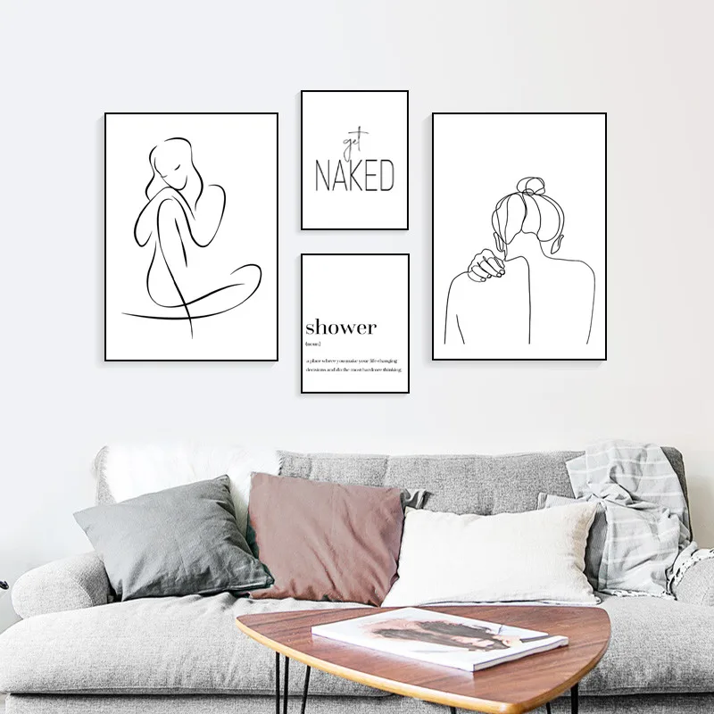 Линия девушка ванная комната настенный Декор холст живопись дыхание...