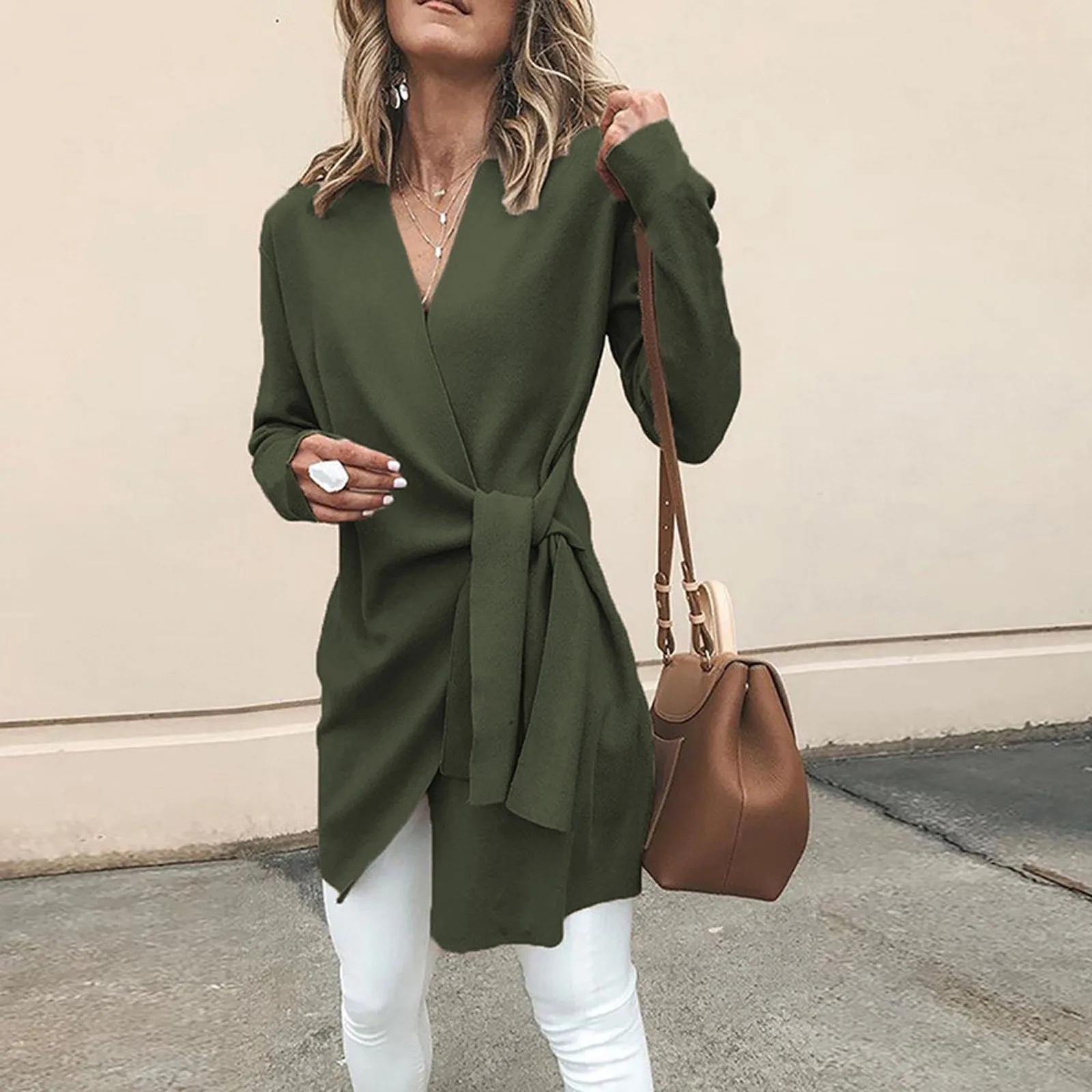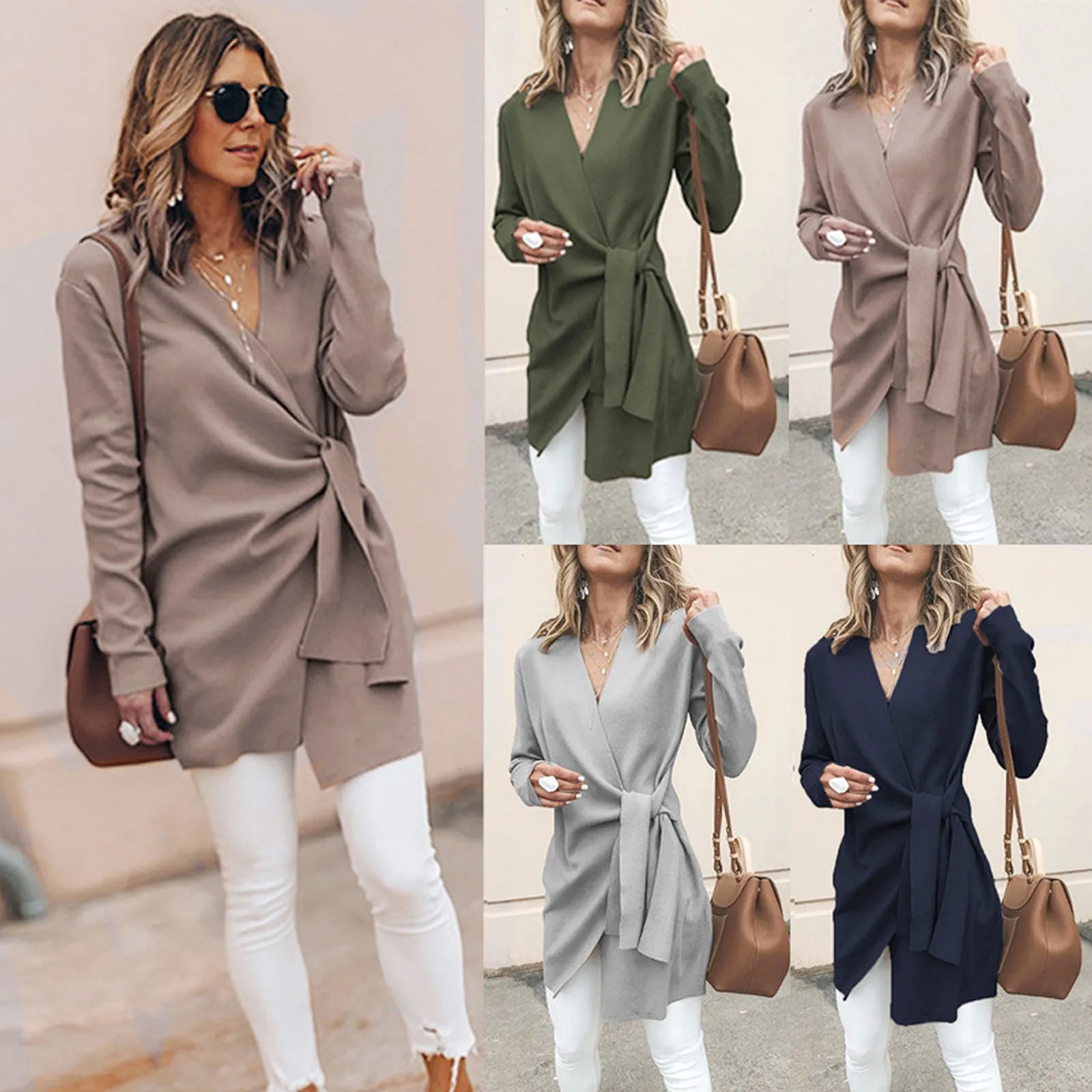 Женский Повседневный кожаный пиджак с V-образным вырезом и открытой передней частью, верхняя одежда, пальто