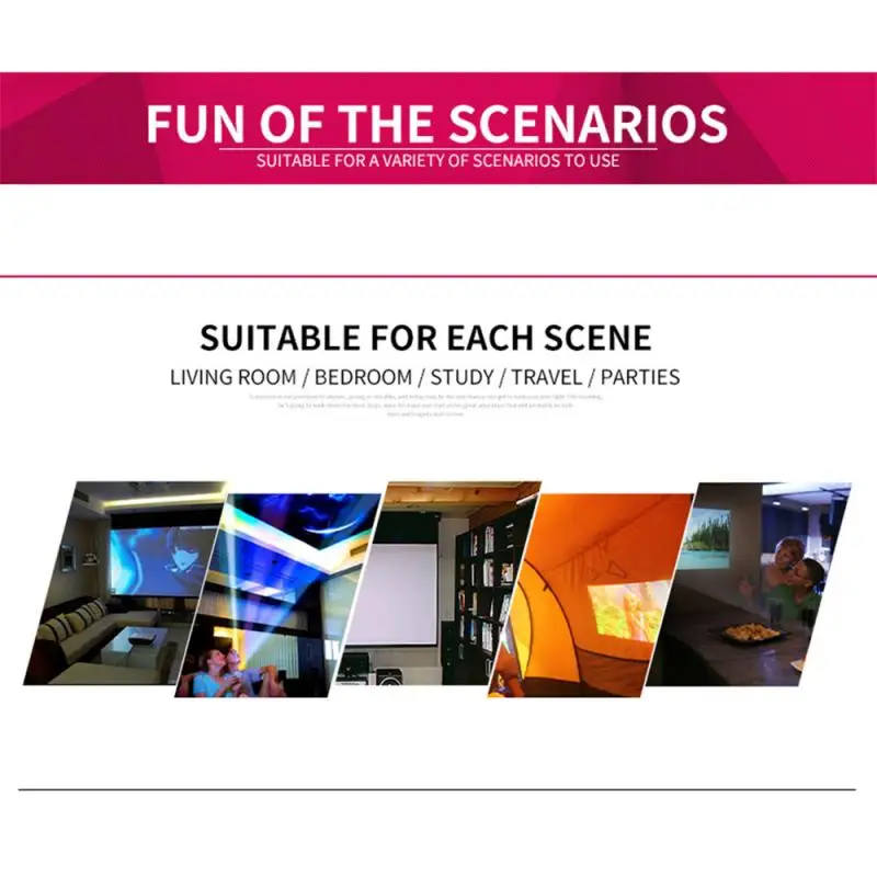 -Идеальный компаньон для детей: Этот мини-проектор карманного размера подходит практически для всех домашних развлекательных устройств. Он может отображать изображения, фильмы, ТВ-шоу, видео, игры на 6О-дюймовом большом экране. Идеально подходит для защиты глаз детей.