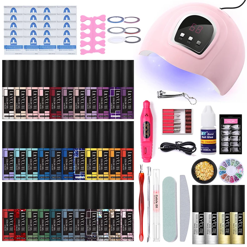 Маникюрный набор LILYCUTE 7 мл, Гель-лак 54 Вт, УФ-лампа, сушилка, набор гель-лаков для ногтей 3350 шт., снимаемое замачиванием Базовое покрытие, инструменты для дизайна ногтей