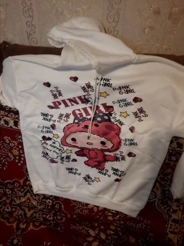 Толстовка Женская с японским мультяшным принтом кролика, пуловер в стиле Харадзюку, уличная одежда, свободная повседневная модная Длинная толстовка оверсайз, топы