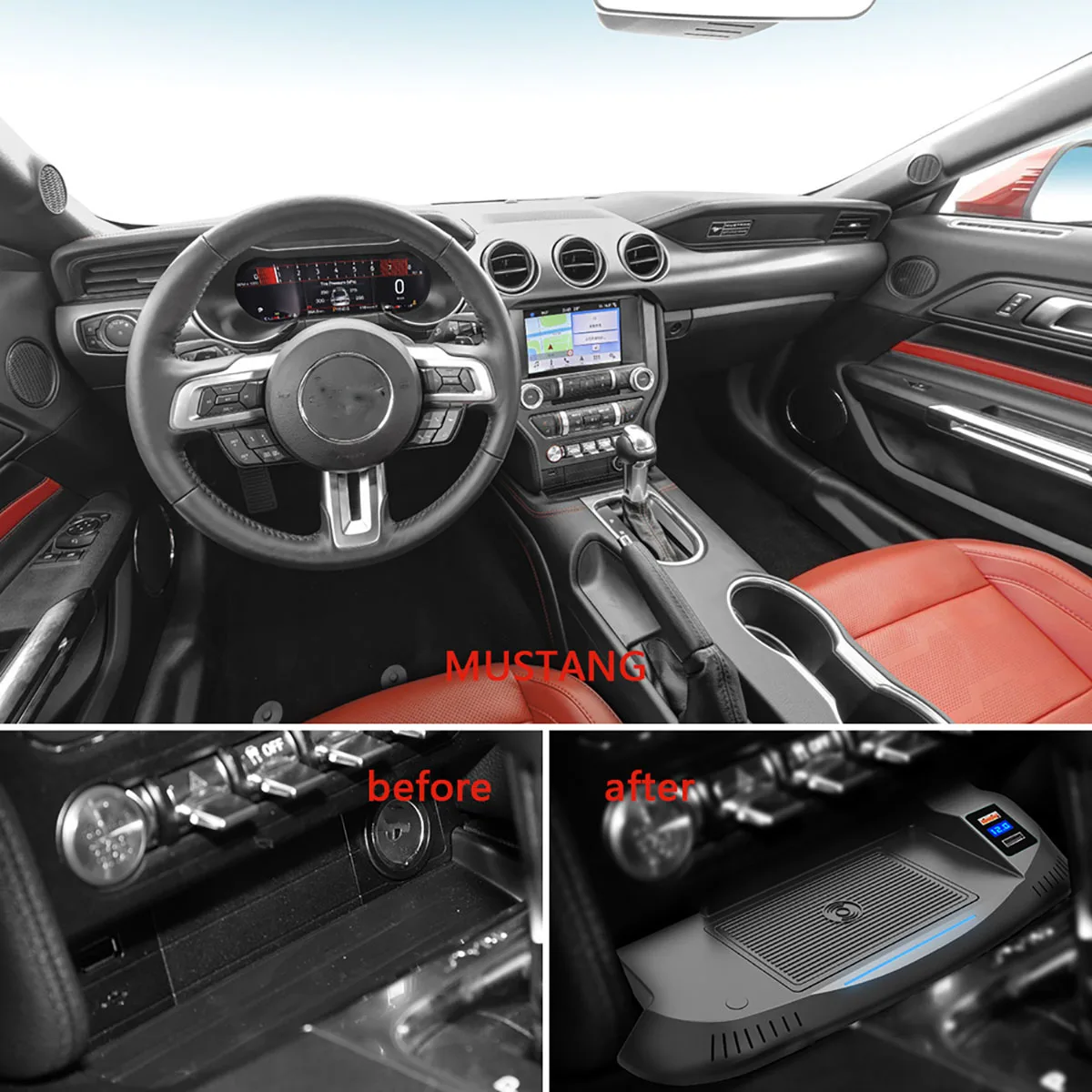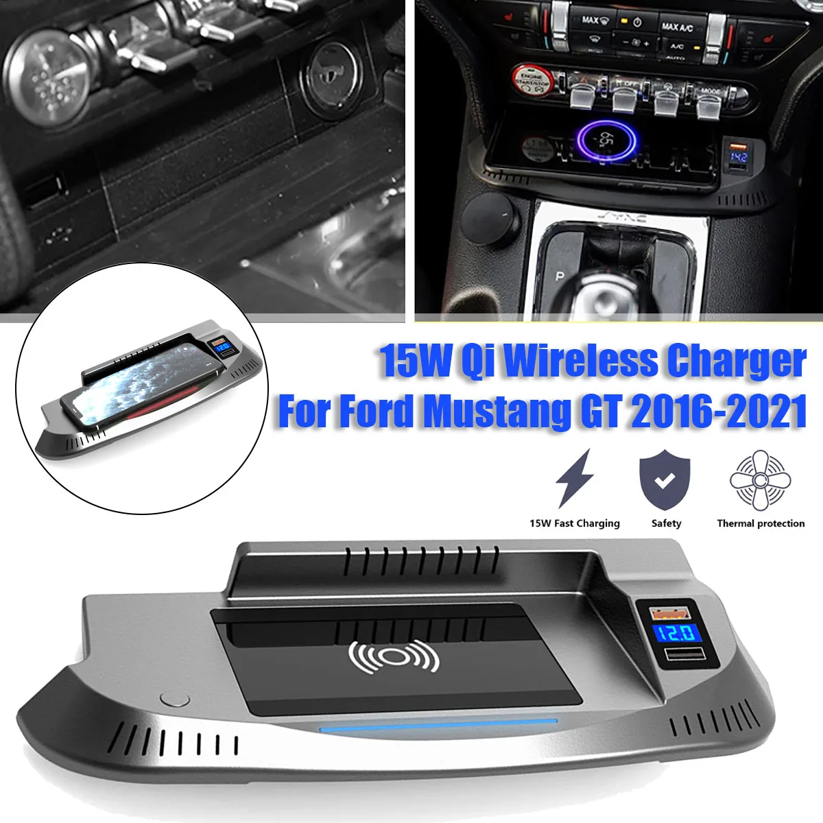Автомобильное беспроводное зарядное устройство 15 Вт Qi для Ford Mustang GT 2015 2016-2020, быстрая зарядка для телефона, аксессуары для модификации интерьера