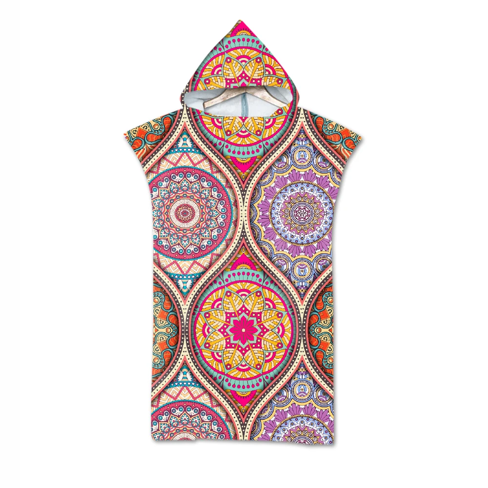 Ткань из микрофибры для взрослых и детей Мандала этнический геометрический узор с капюшоном Женский Мужской Быстросохнущий плащ для серфинга