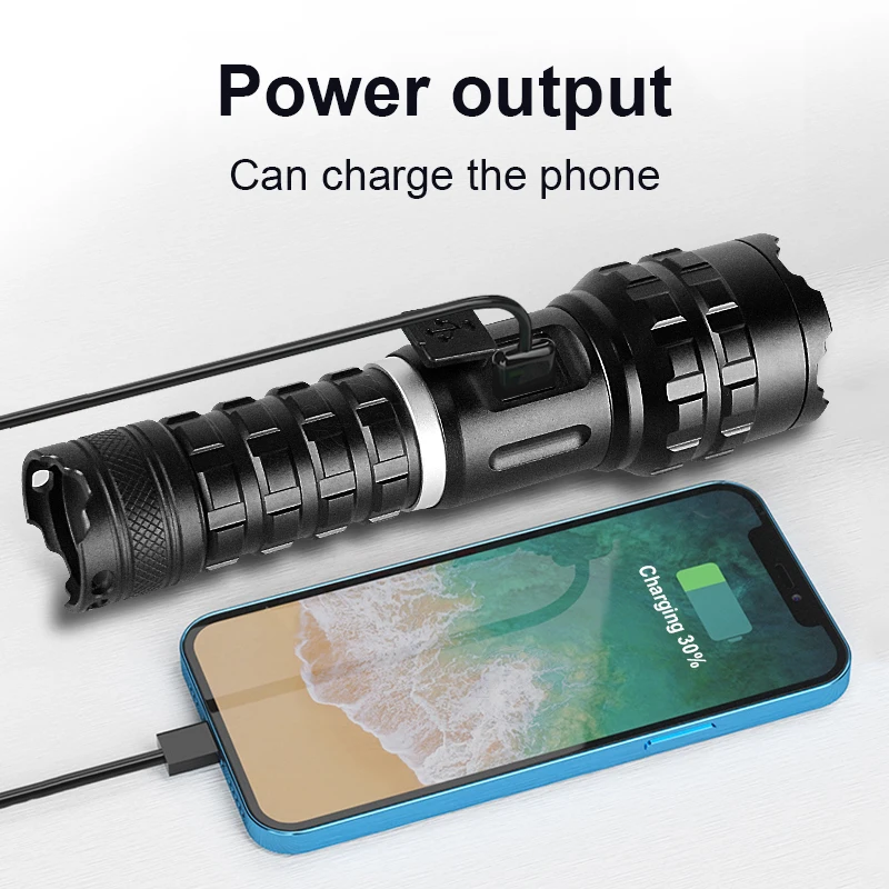 1: супер XHP199 фитиль, яркость выше вашего воображения.2: Может использоваться как Мобильный банк питания для зарядки мобильных телефонов.3: IPX8 водонепроницаемый, может использоваться в дождливые дни.4: продукт с интеллектуальным контролем температуры и Предупреждение о низком напряжении, высота от падения до 2 метров.