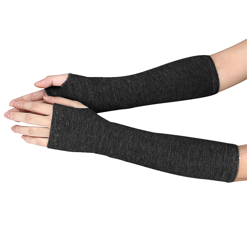 Длинные митенки без пальцев, перчатки, Осенние вязаные перчатки, теплые эластичные варежки на запястье с длинными однотонными перчатками для женщин D6
