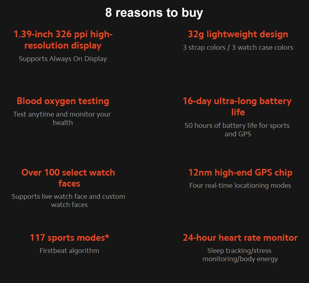 Обновленный алгоритм AI с низким энергопотреблением снова улучшает Срок службы батареи часов. 16 дней типичный режим использования 22 дня долгий срок службы батареи 50 часов Спорт на открытом воздухе режим