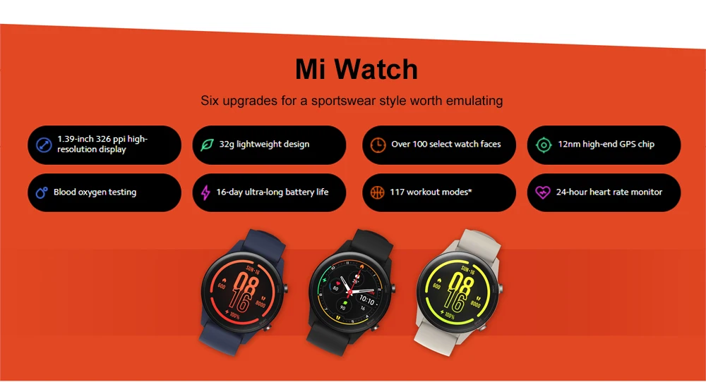 Часы MiШесть обновлений для спортивного стиля, достойного подражанияВстроенный GPS | 1,39 'AMOLED | Уровень кислорода в крови | Водонепроницаемость 5 АТМ | Поддержка emoji