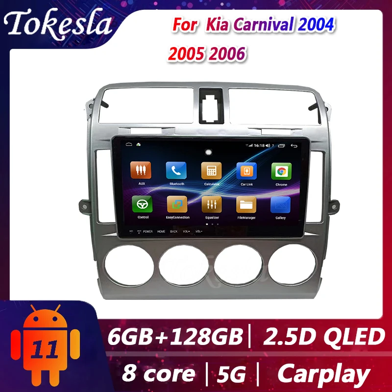 Автомагнитола Tokesla, 2 din, мультимедиа, Dvd, видео плеер, GPS-навигация, стерео приемник, 4G, для Kia Carnival
