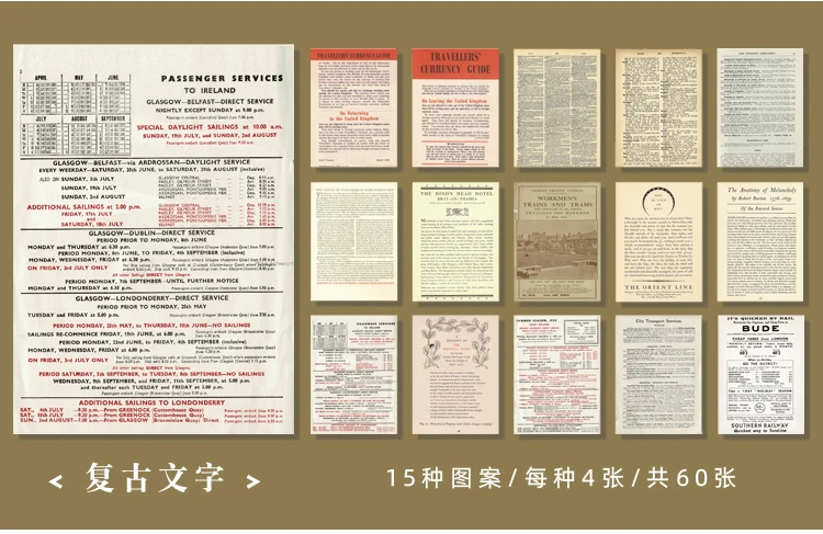 Продукт: винтажная бумагаСтиль: 12Материал: бумагаРазмер: 10*14 смКоличество: 60 шт.