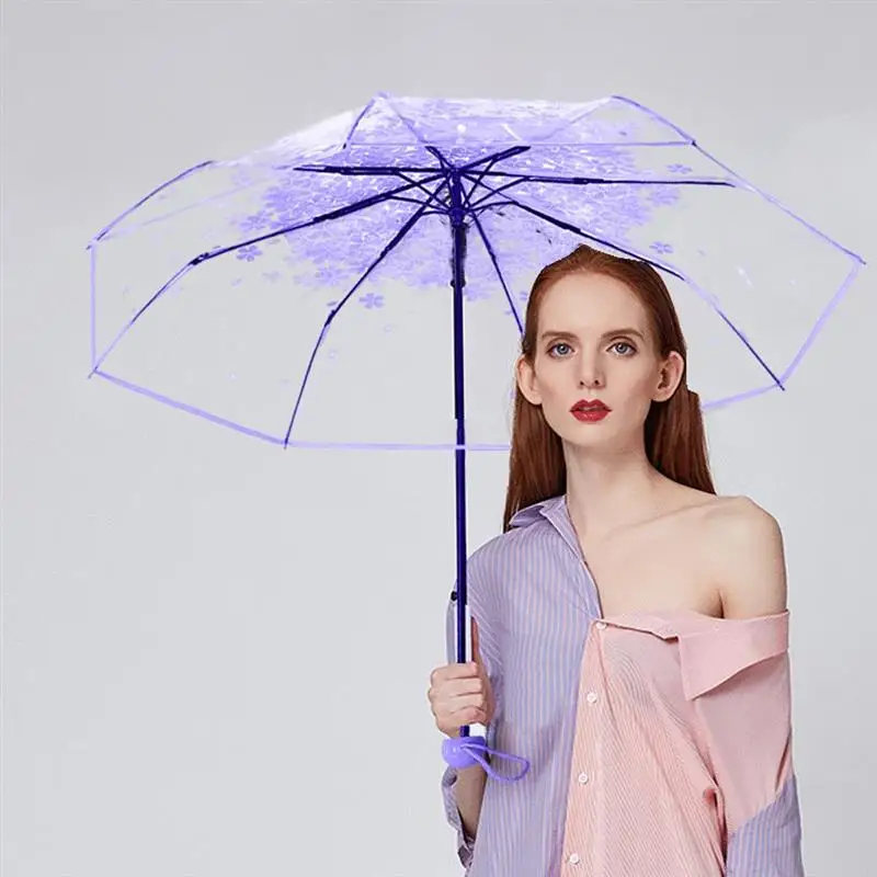 Женский Зонт от дождя, портативный прозрачный зонт с принтом цветущей вишни, три складных зонтика от дождя для съемки