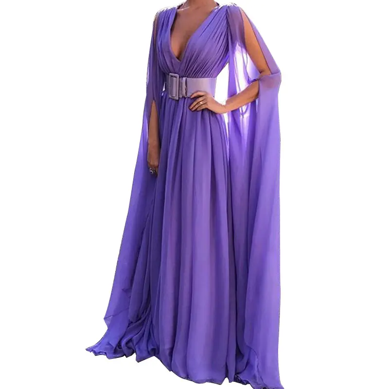 Женское шифоновое платье подружки невесты однотонное официальное платье макси кружевное привлекательное модное женское платье с V-образным вырезом элегантное темпераментное женское платье