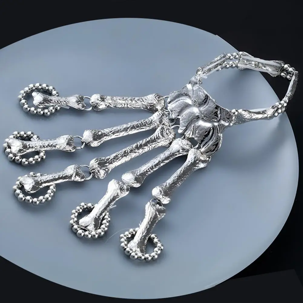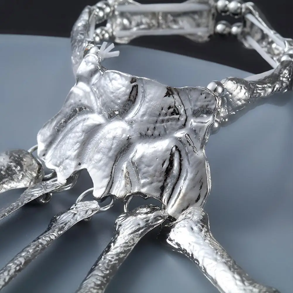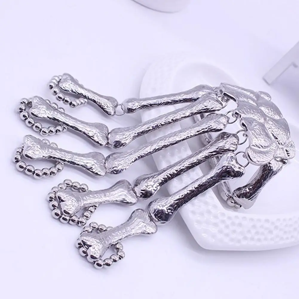 Хэллоуин браслет, соединенный с кольцом на пальце готический панк преувеличенный скелет кости суставы руки браслет, соединенный с кольцом на пальце украшения для вечеринки ювелирные изделия