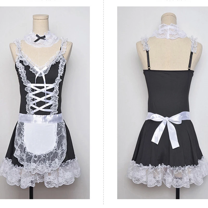 Сексуальный костюм горничной платье Готическая Униформа Эротическое белье для женщин Langerie ролевые игры Лолита кружевной наряд фартук для косплея служанки