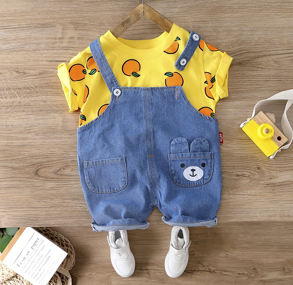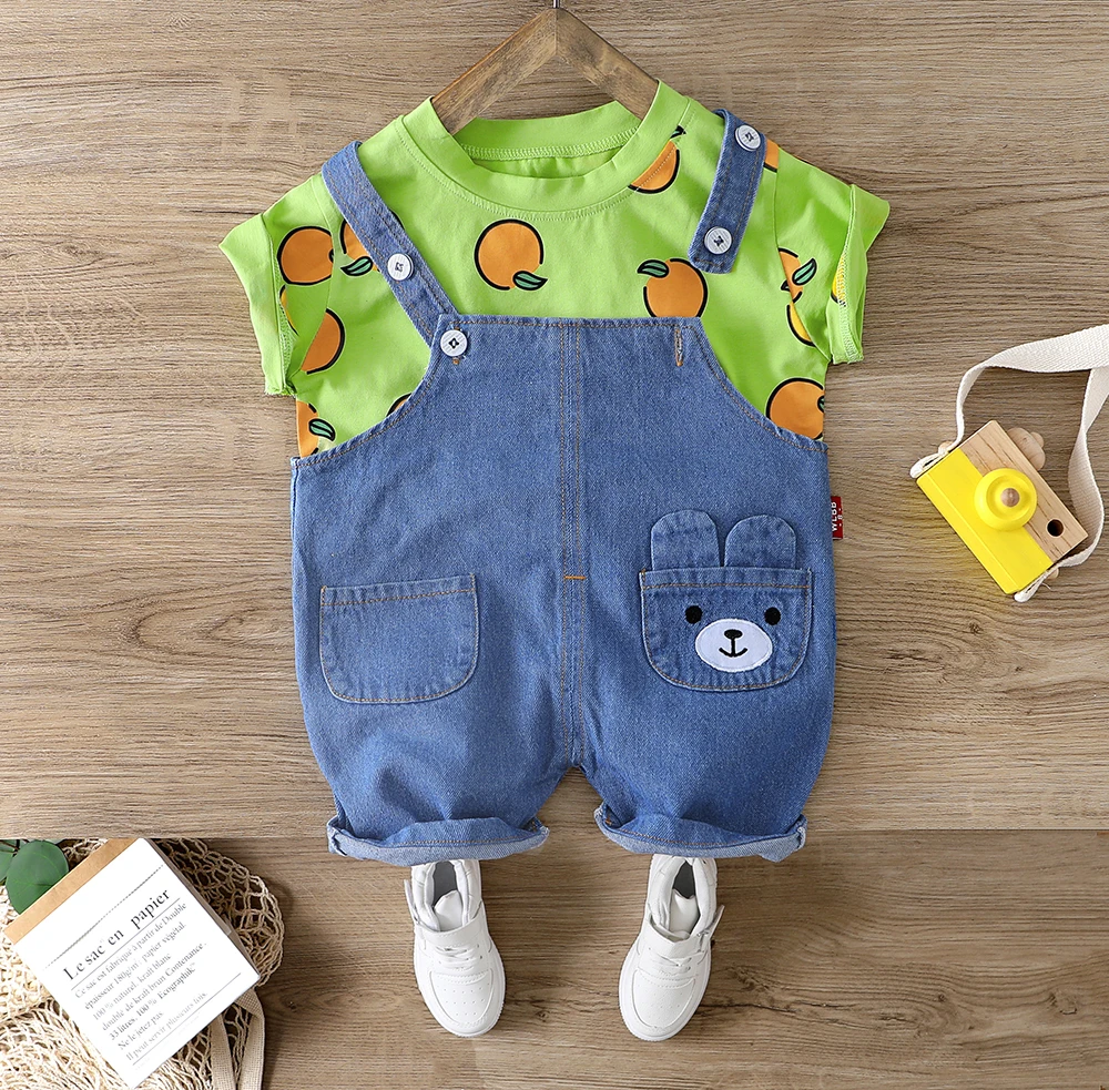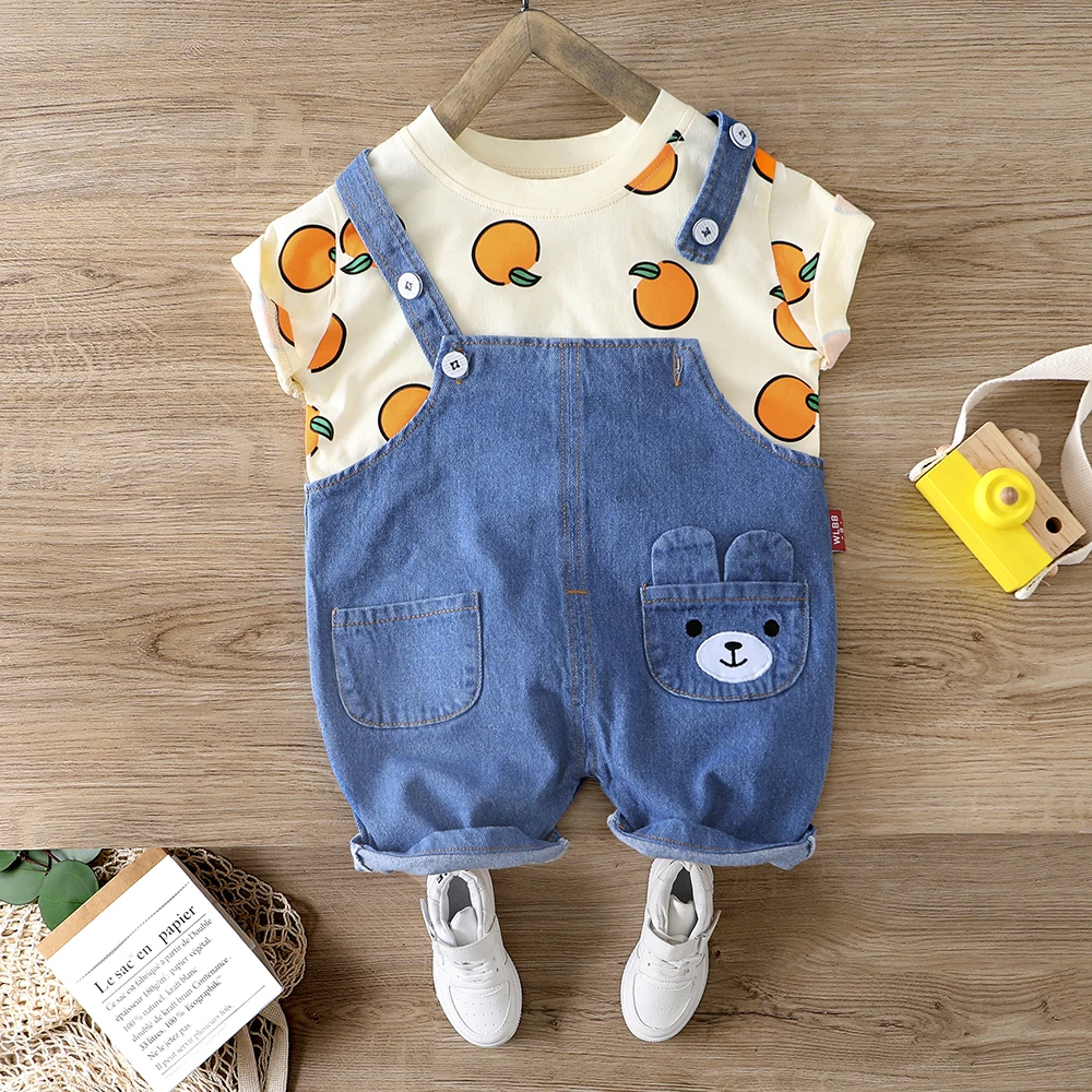 Детская летняя футболка, комплект одежды для мальчиков и девочек, женский джинсовый комбинезон, рубашка, праздничный костюм, одежда, костюм