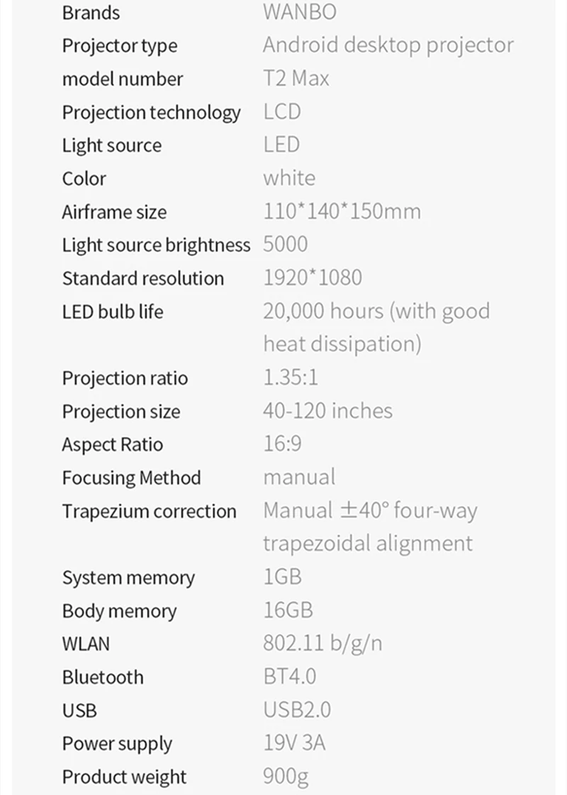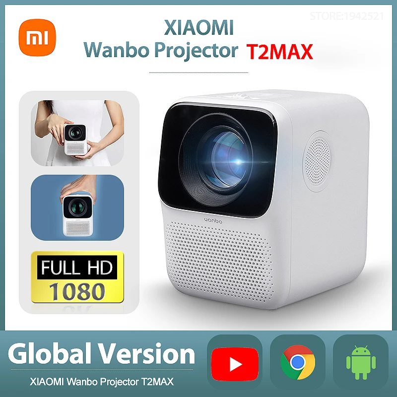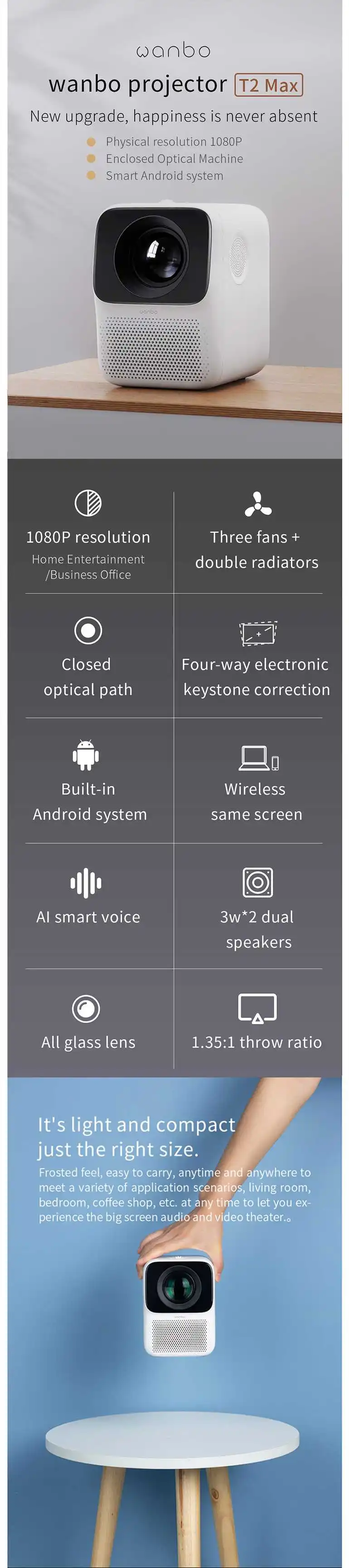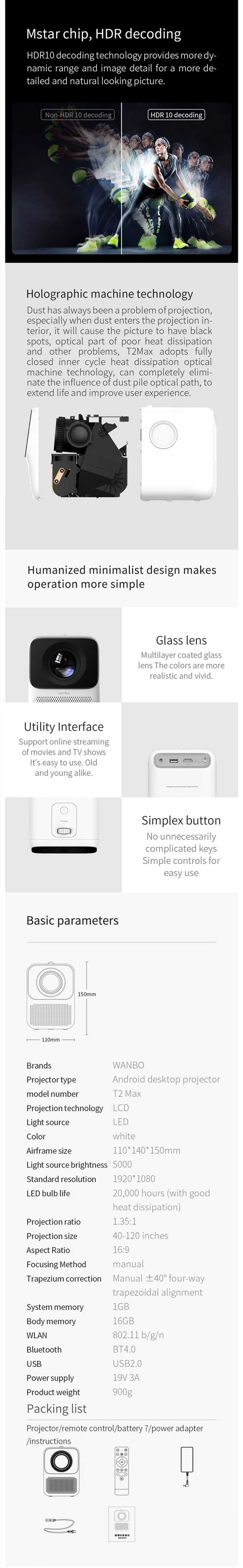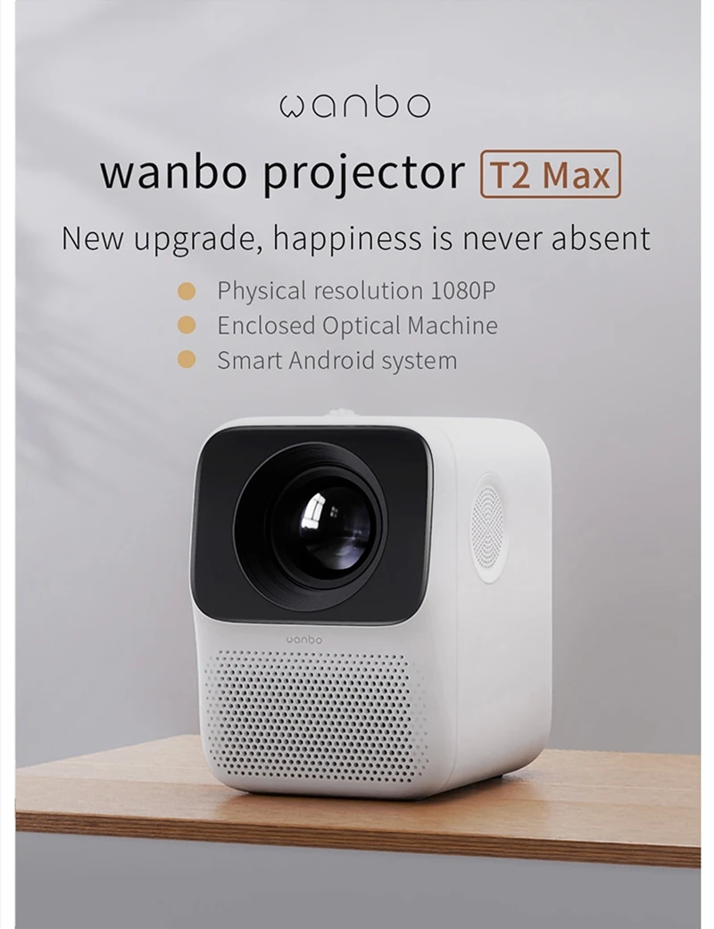Global Android XIAOMI Wanbo Projector T2 MAX 4K HD 1080P Mini LED WIFI 200ANSI для телефона YouTube Портативный домашний кинотеатр Кинотеатр 1920 * 1080P Коррекция трапецеидальных искажений
