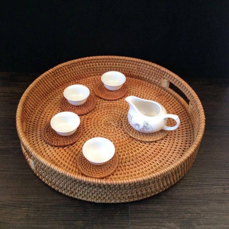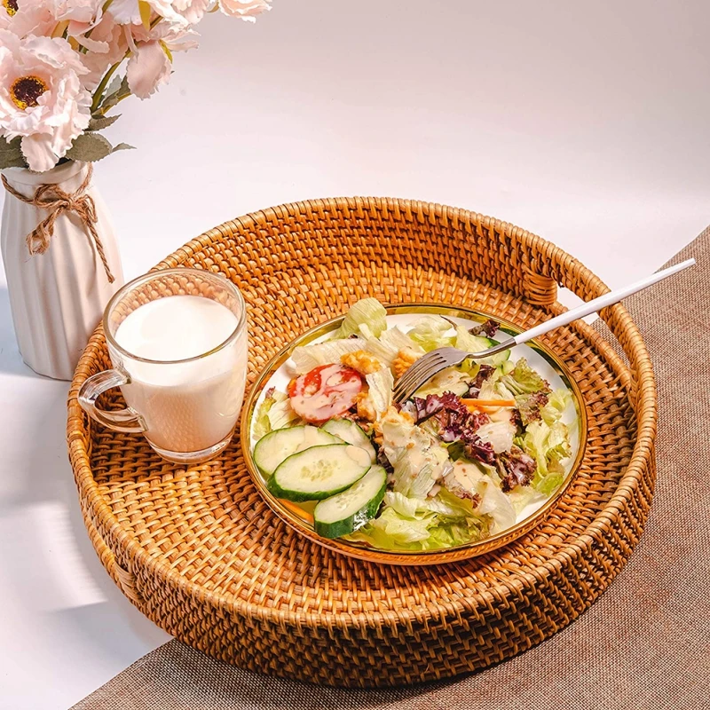 Плетеная корзина для продуктов ручной работы, тарелка для фруктов, ротанговый поднос, многофункциональный лоток для послеобеденного чая, корзина для хранения фруктов