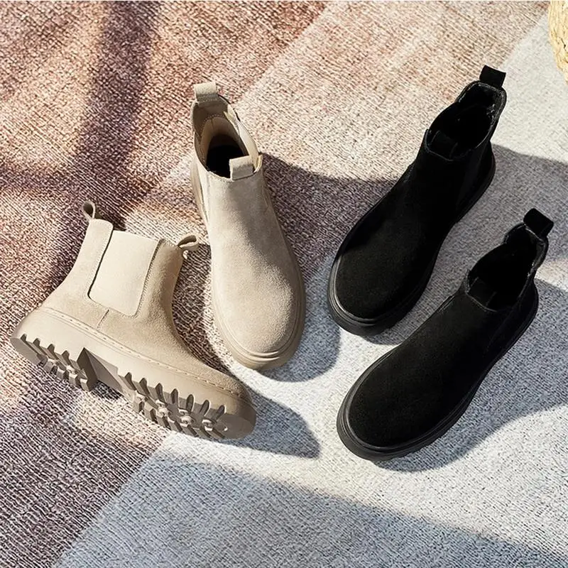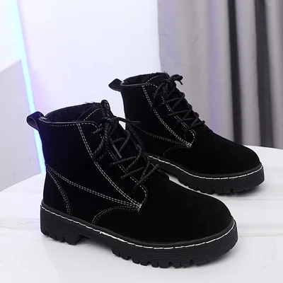 Женские ботинки на толстой подошве, черные повседневные ботильоны н...