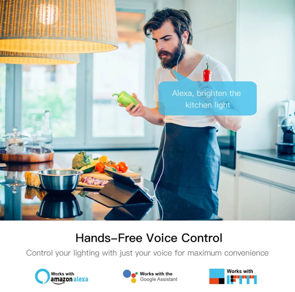 3.Голосовое управление: Идеально совместим с Alexa и работает с Google Home. Включите/выключите свет с голосовыми командами, когда ваши руки полны.