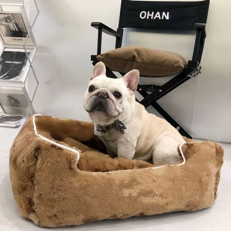 Дизайнерская кровать для собаки, зимняя меховая теплая собачья кровать для средних и больших собак, шикарная собачка чихуахуа с модным принтом французского бульдога