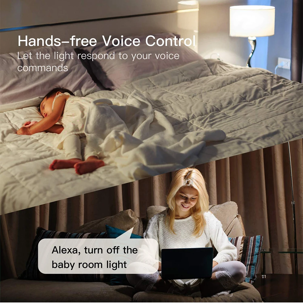 3.Голосовое управление: Идеально совместим с Alexa и работает с Google Home. Включите/выключите свет с голосовыми командами, когда ваши руки полны.