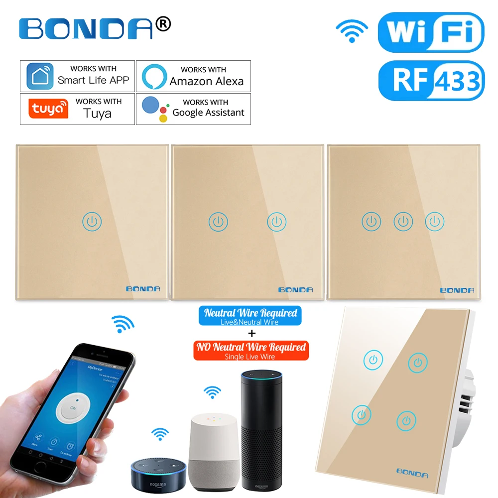Умный сенсорный выключатель BONDA RF433 с Wi-Fi и управлением через приложение