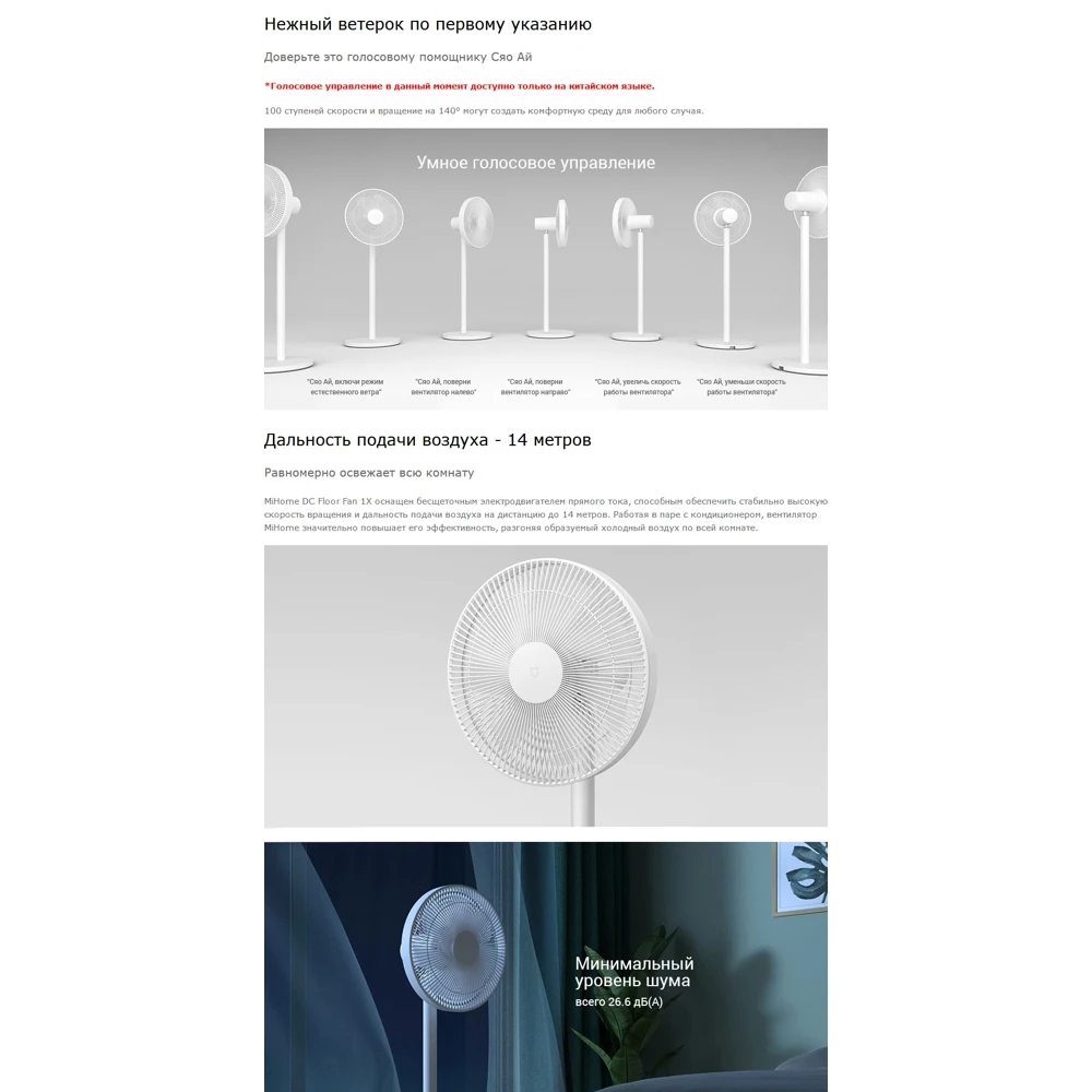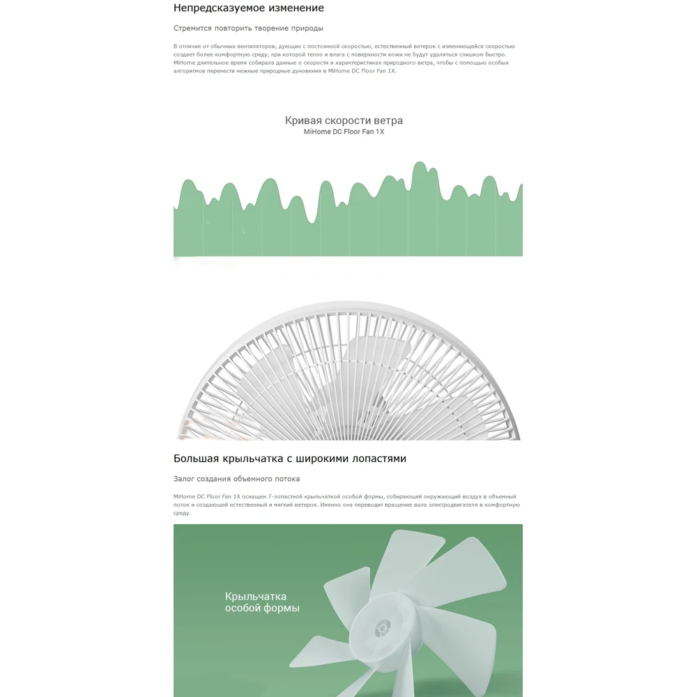 Мощность 15 Вт. Уровень шума: 26.6 дБ. Взаимодействие с мобильным приложением: Mi Home. 100 ступеней скорости, угол вращения 1400, 7 лопастей, дальность обдува 14м. Размеры 950x343x330 мм, вес 2,8 кг. Техническое описание Мощность: 15 Вт Материал корпуса: Пластик Уровень шума: 26.6 дБ Умный дом Тип подключения: Wi-Fi Wi-Fi: 802.11 b/g/n, 2.4 ГГц Взаимодействие с мобильным приложением: Mi Home Источник питания: От сети Параметры входа: 220V~50 Hz Длина кабеля: 1.6 м Установка: Напольный Особенности: Имитация природного ветра; управление с помощью мобильного приложения; режимы программирования Функция поворота Обслуживаемая площадь (кв.м.): 23 м and sup2; Размеры: 950 x 343 x 330 мм Вес (g): 2800