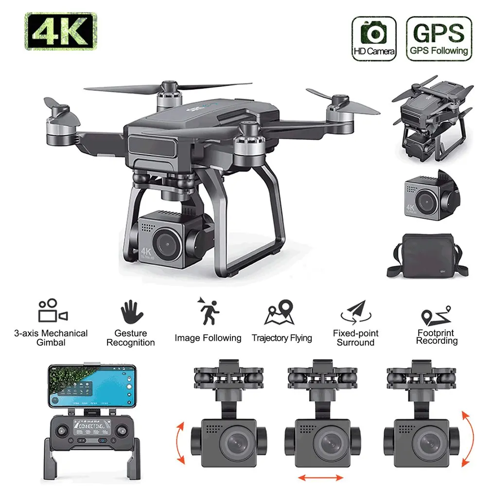 Квадрокоптер F7 4K PRO с трехосным механическим карданным подвесом, 4K воздушная камера, бесщеточный двигатель, четырехосевой самолет с сумкой для хранения
