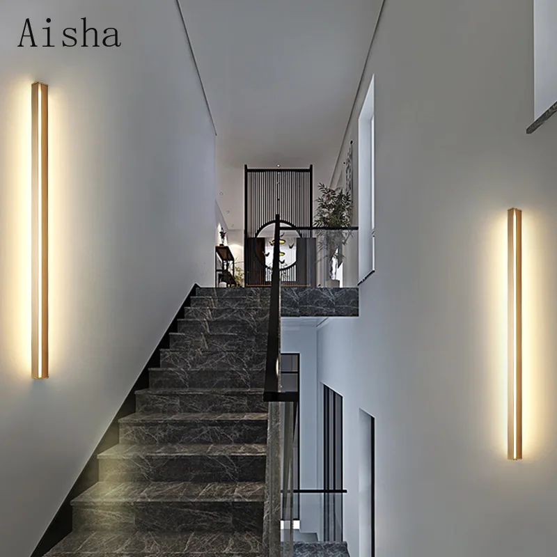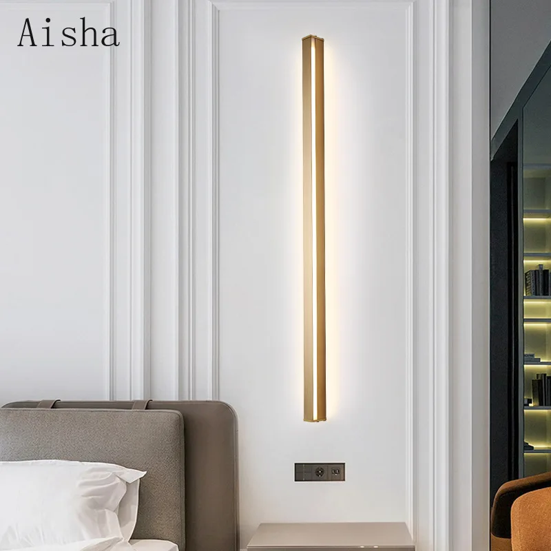 Простая настенная лампа в золотистой полосе, современная лампа для гостиной, спальни, прикроватная лестница, фон для стены, светодиодная атмосферная лампа