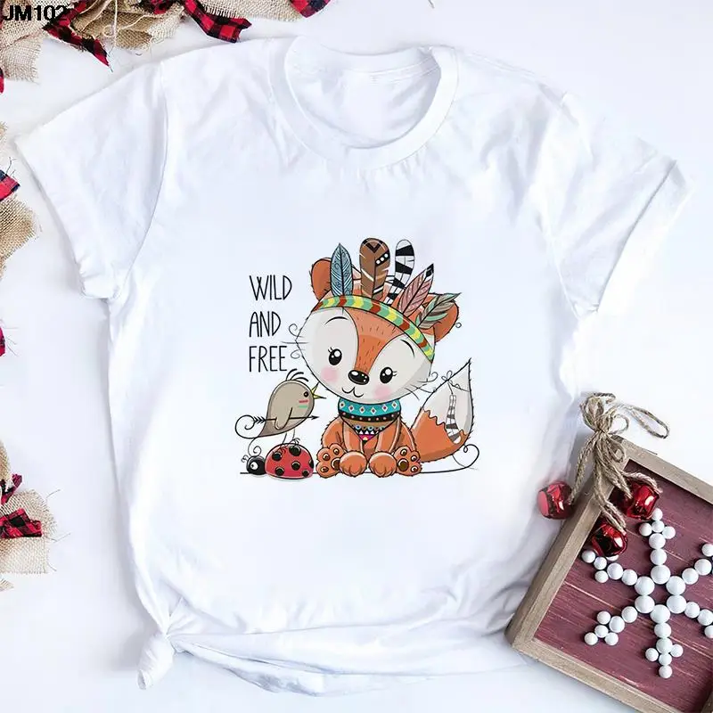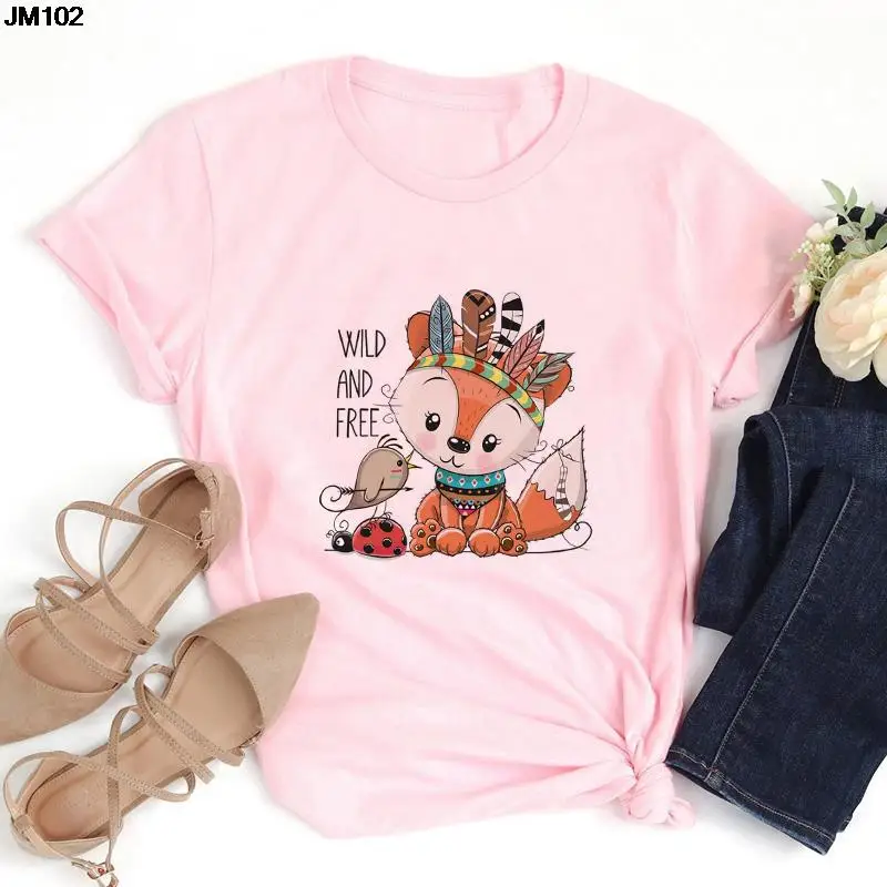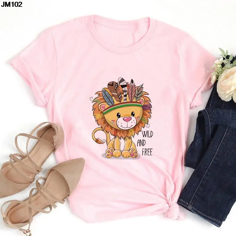 Футболка женская с принтом в виде животных, летняя, с круглым вырез...