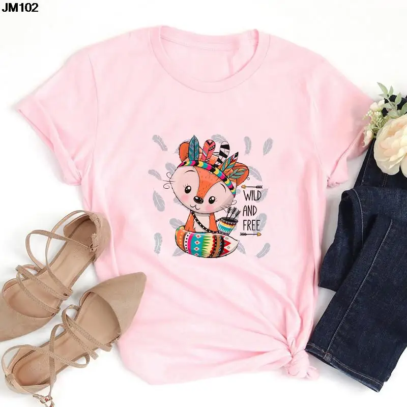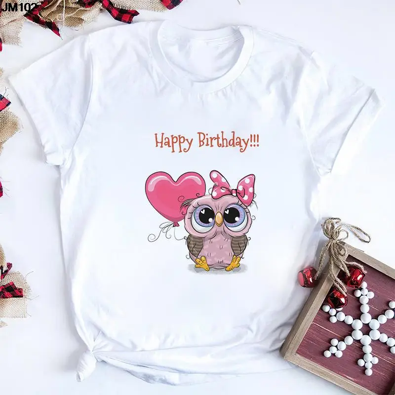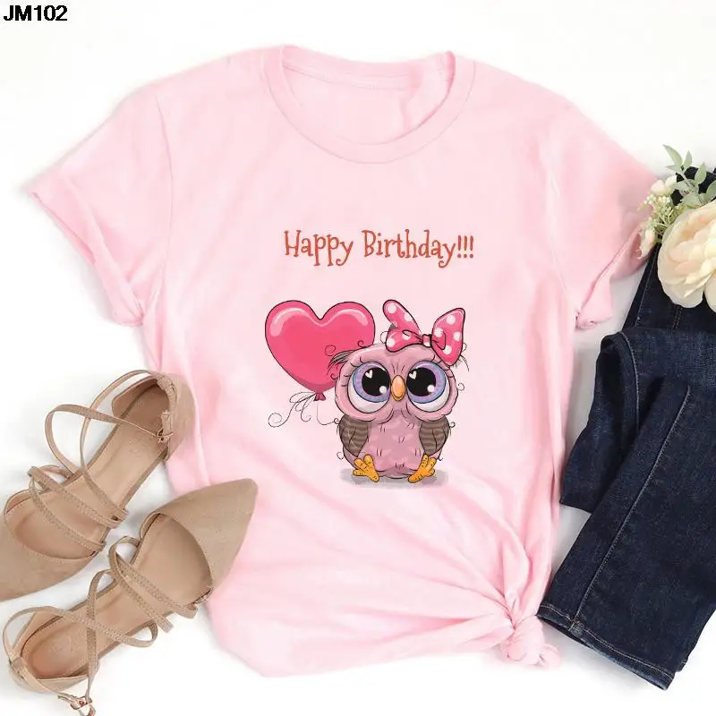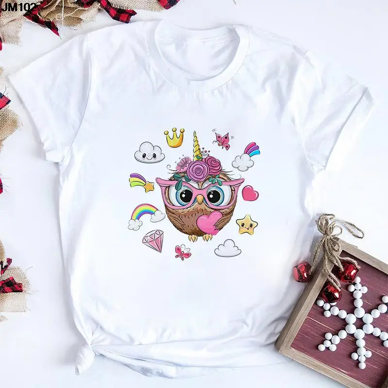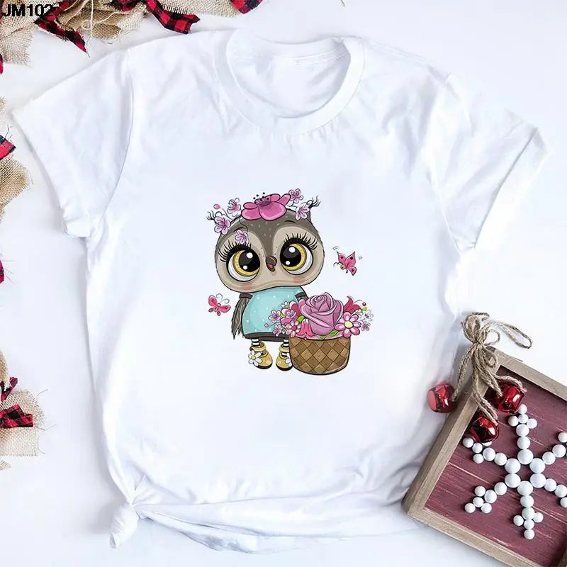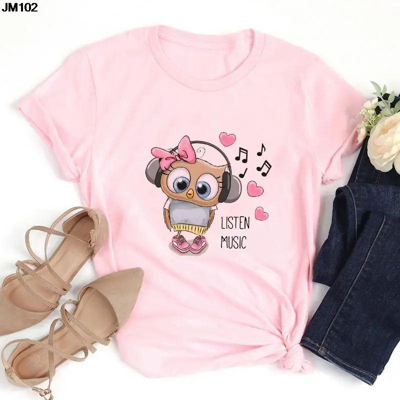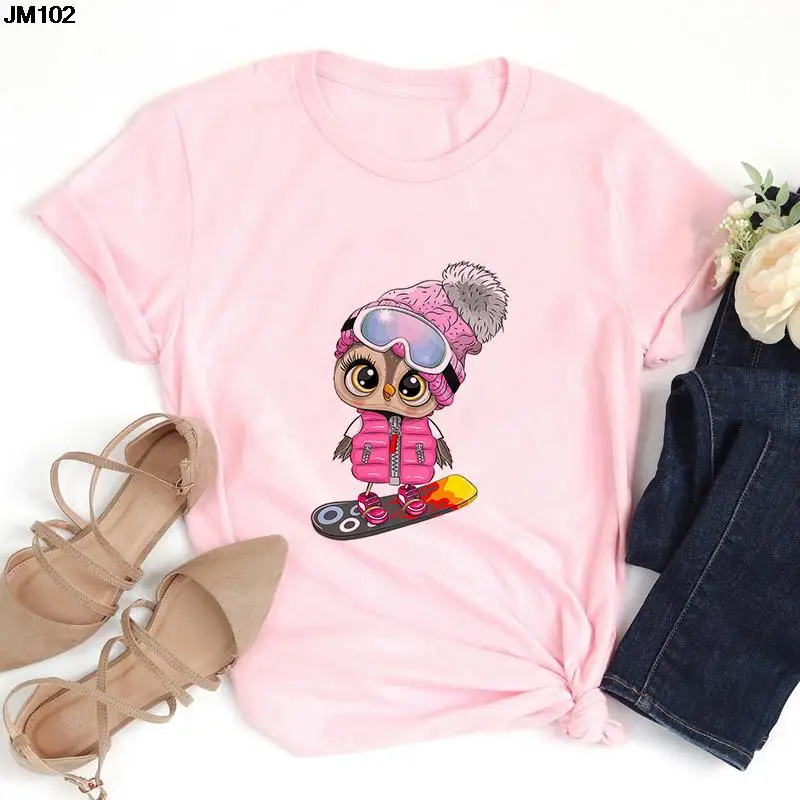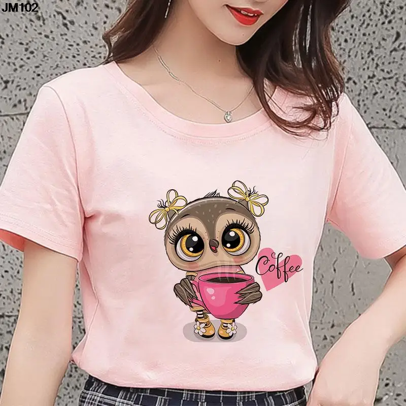 Футболка женская с принтом Совы и кофейного цвета, модная повседневная рубашка в стиле Харадзюку, розовый топ с коротким рукавом, одежда на лето