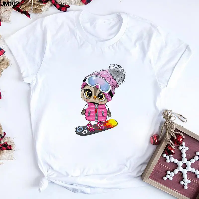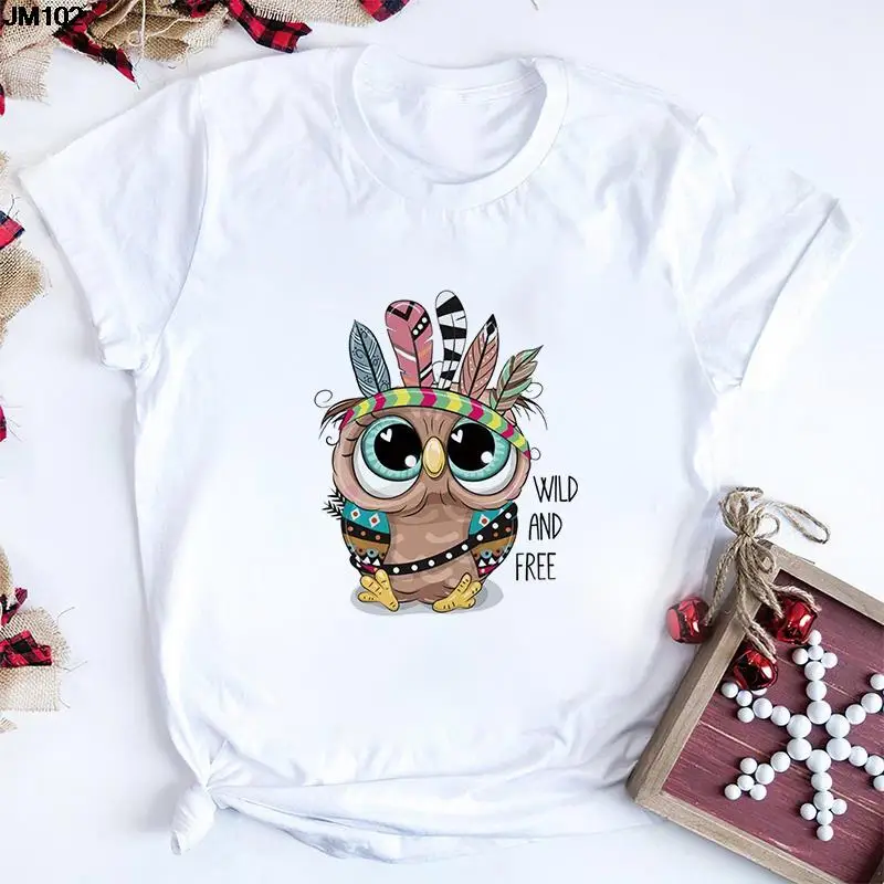 Женская футболка с принтом совы, Повседневная белая футболка с коро...