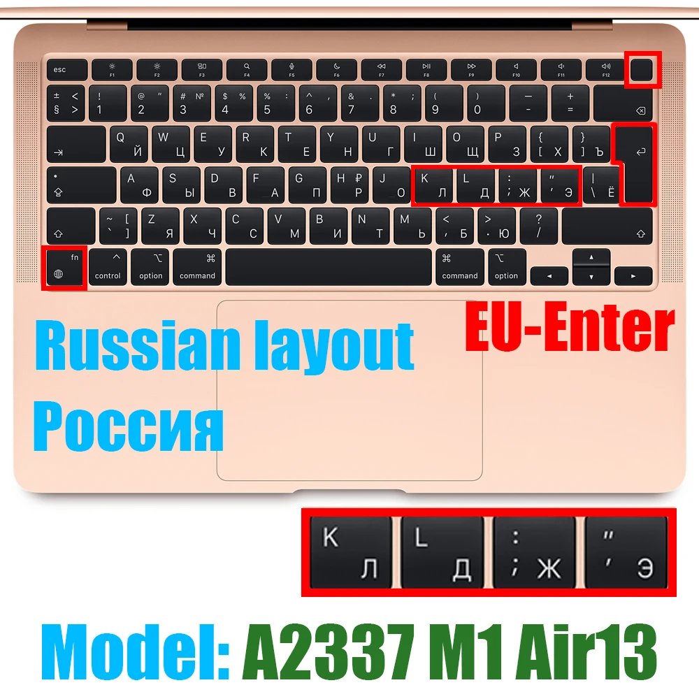 Чехол для клавиатуры Apple Air13 M1 Chip ES RU, силиконовая защитна...