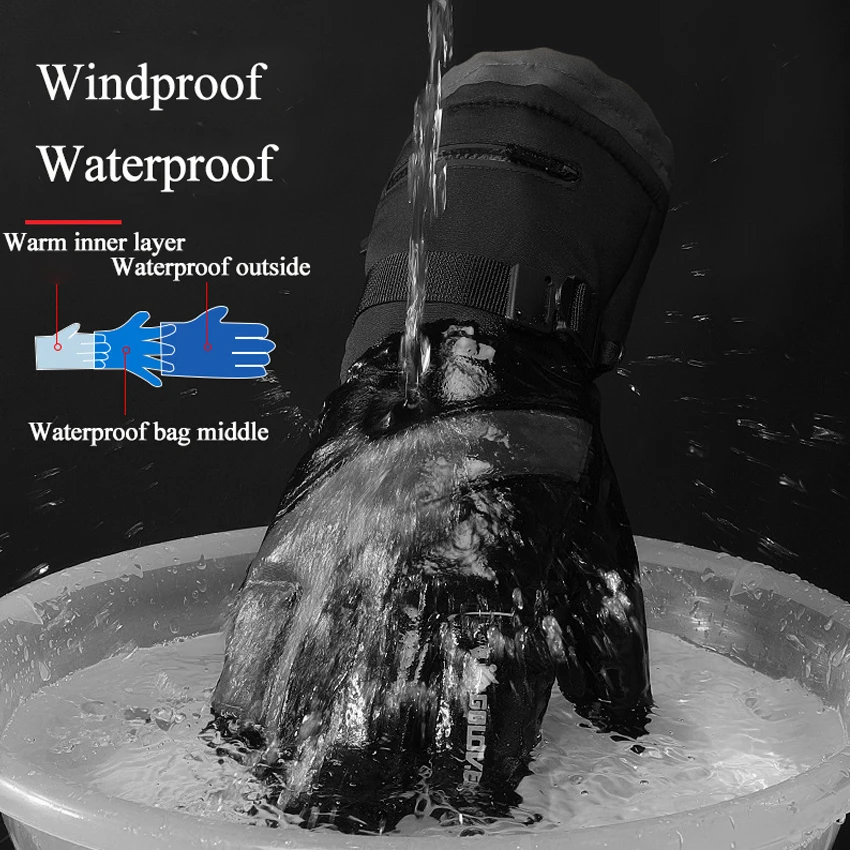 Модные Плотные лыжные перчатки, зимние мужские перчатки, Нескользящие, четырехслойные теплые перчатки, водонепроницаемые, ветрозащитные, с карманами на молнии