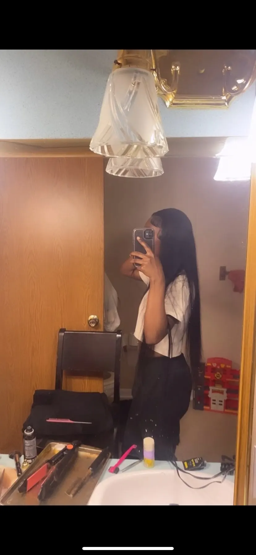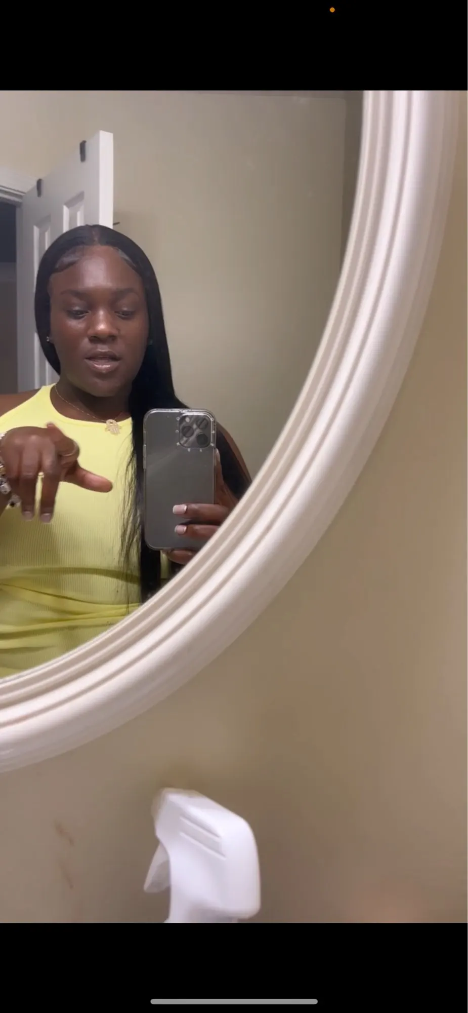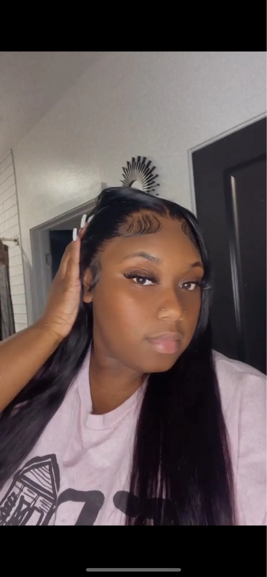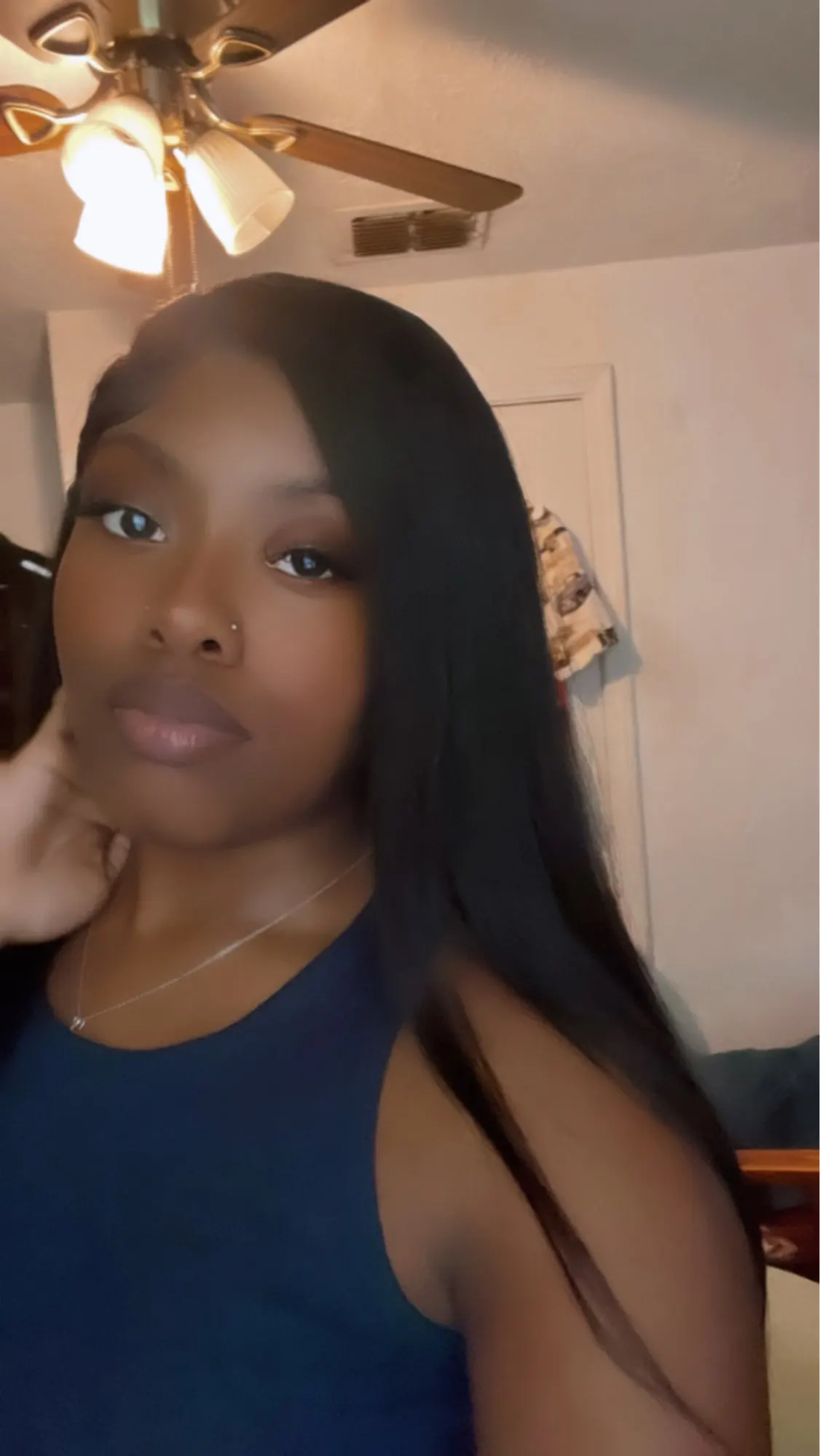 Я так люблю волосы, он пришел так быстро, продавец очень профессиональный и вежливый, Я получил 22 дюйма, я 5'4, и он доходит до самого конца моей спины <3. Кружево тонкое, поэтому его легче лежать, не выцветает + очень мягкий 10/10, если вы думаете, что он <3.