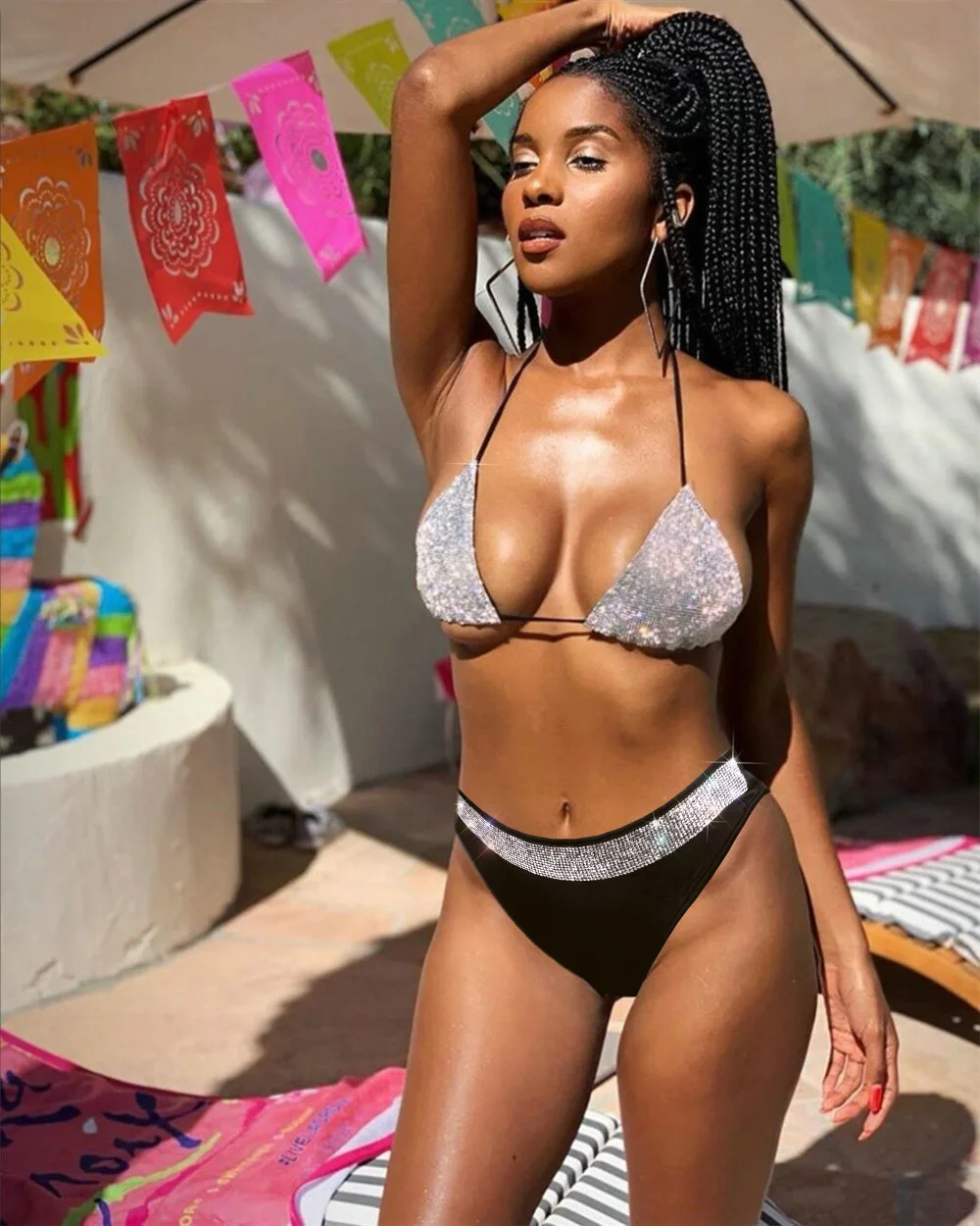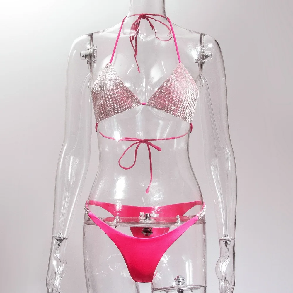 Сексуальное микро блестящее бикини со стразами 2020, женский купаль...