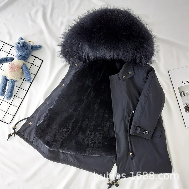 Детская куртка с капюшоном, зимняя парка для мальчиков и девочек с подкладкой из натурального Лисьего меха и меховой подкладкой