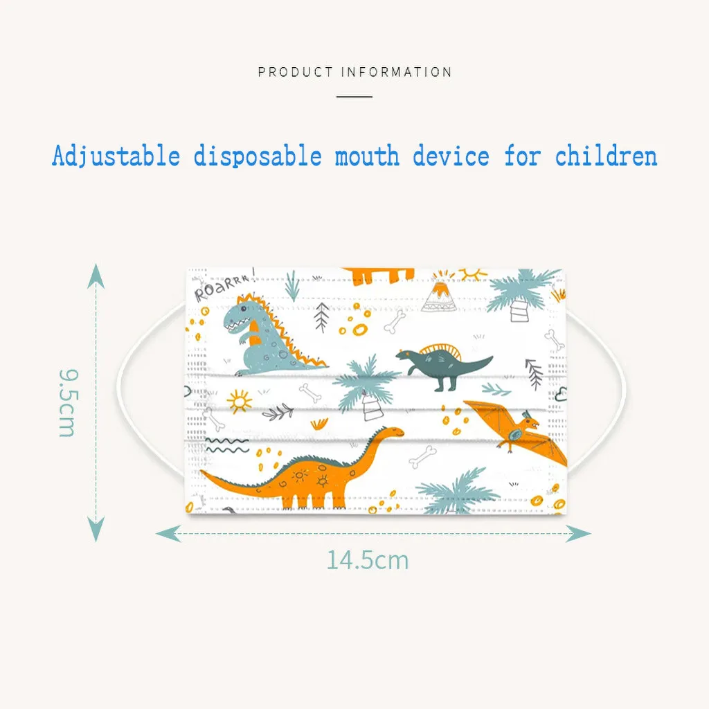 50 шт., одноразовые маски для лица с мультяшным динозавром