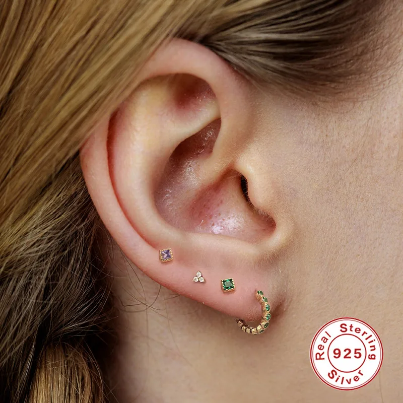 Женские серьги-гвоздики из серебра 925 пробы с геометрическим рисунком