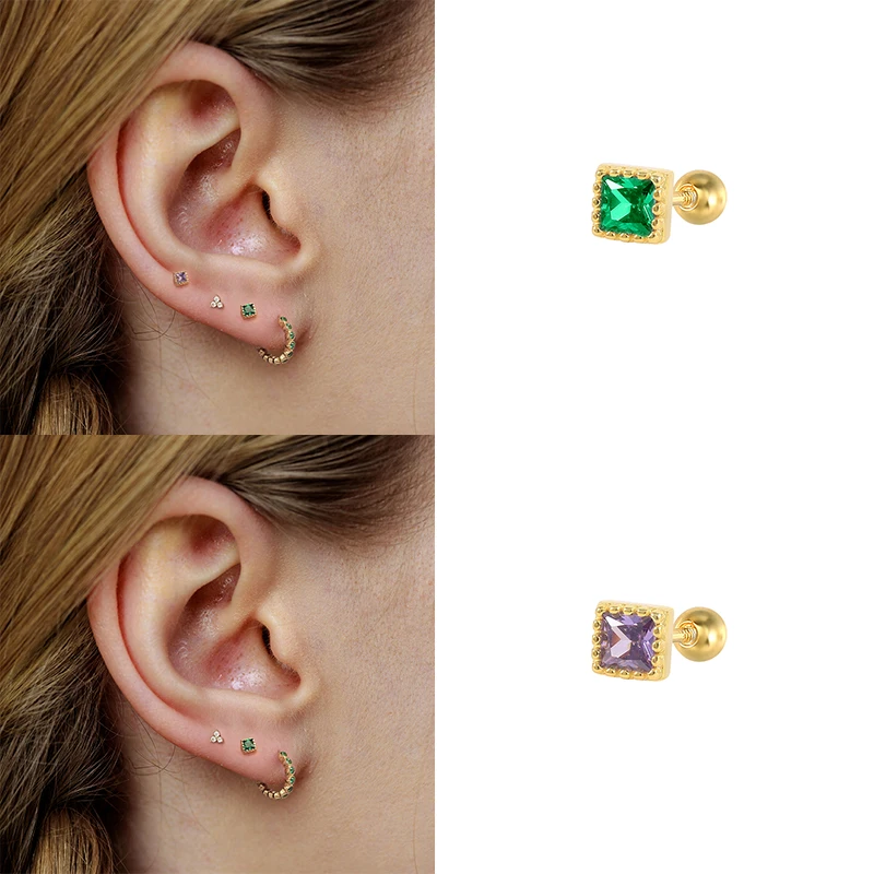 Женские серьги-гвоздики из серебра 925 пробы, с квадратной нитью