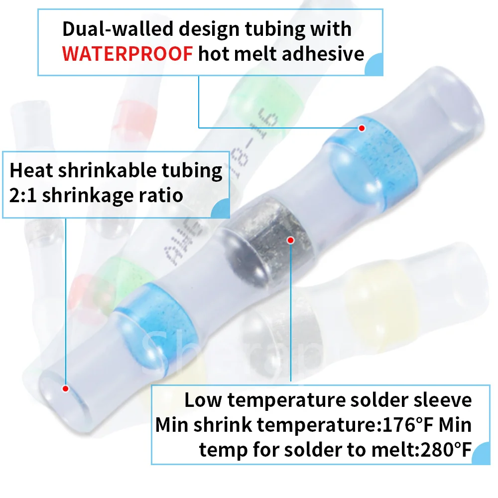Термоусадочные стыковые соединители для пайки, 300 шт., водонепрони...