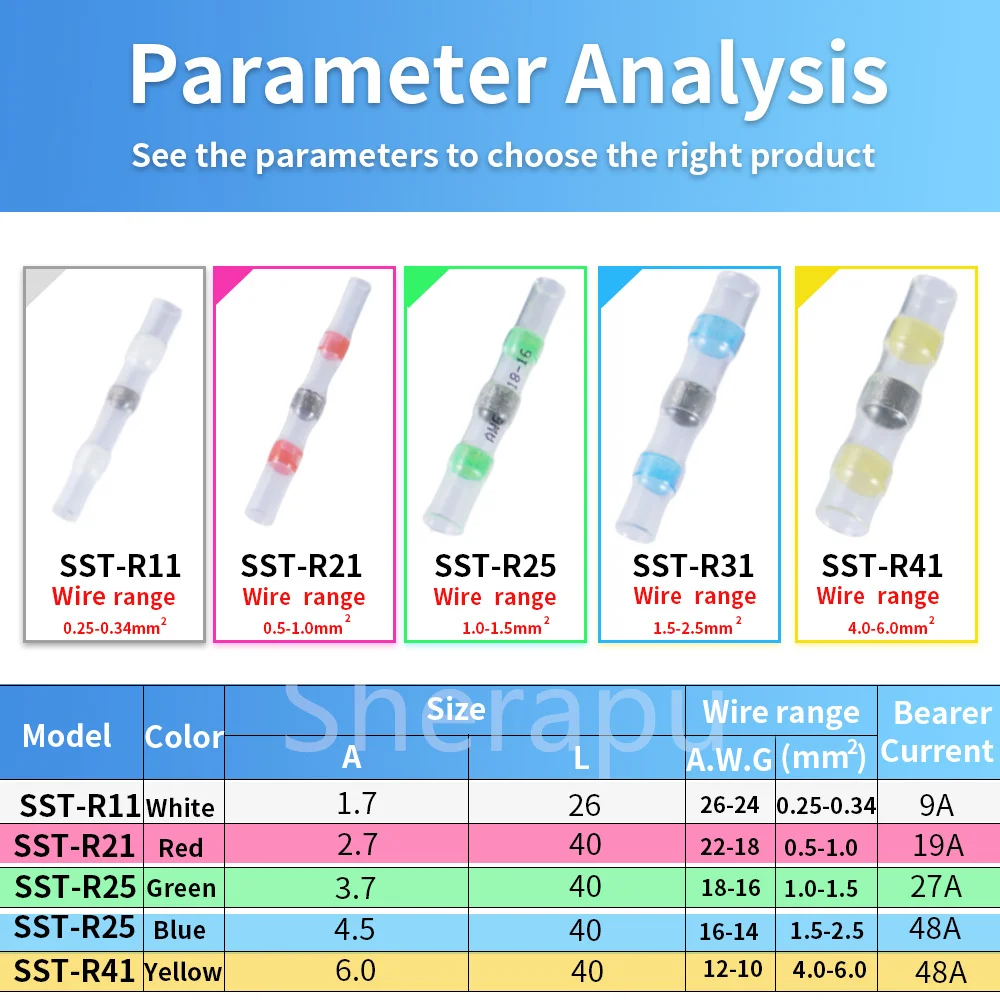Соединители для паяных проводов, 5020 шт., термоусадочные стыковые ...