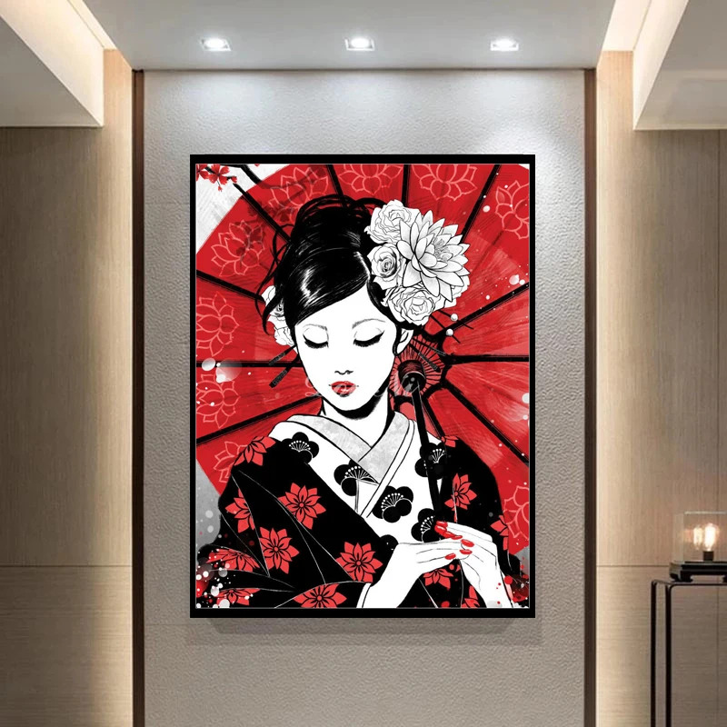 Алмазная живопись, картина с изображением гейши, мозаика, вышивка, картина, Япония, женщины, стразы, интерьер, Декор для дома, полный квадрат