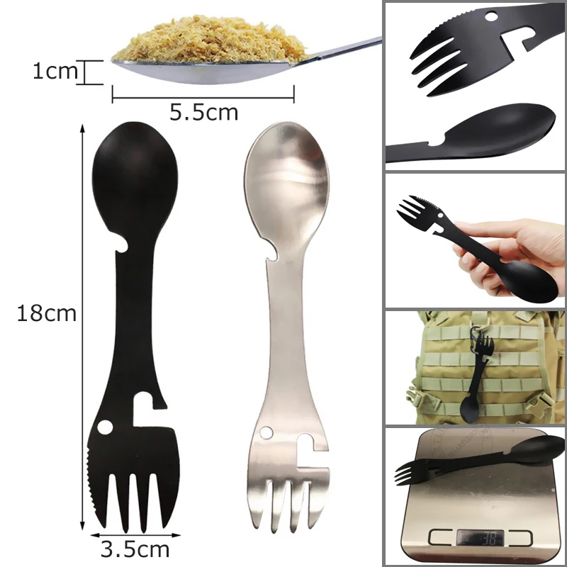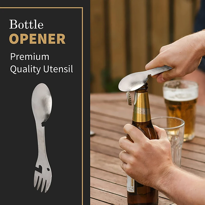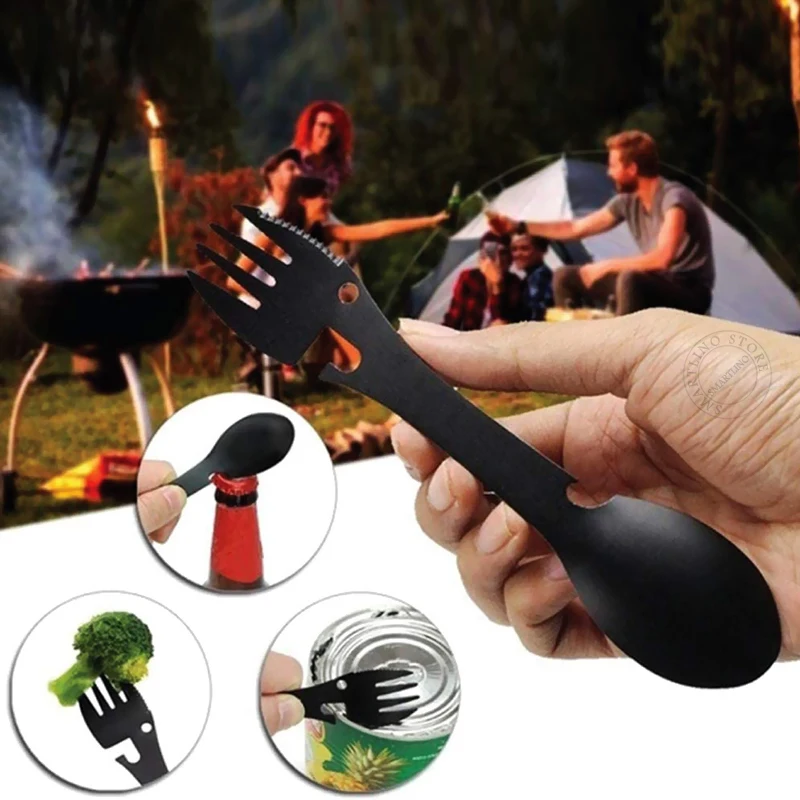 Портативный комплект для кемпинга, практичный Многофункциональный вилочный нож, ложка, открывалка для бутылок, уличные инструменты для самообороны и выживания