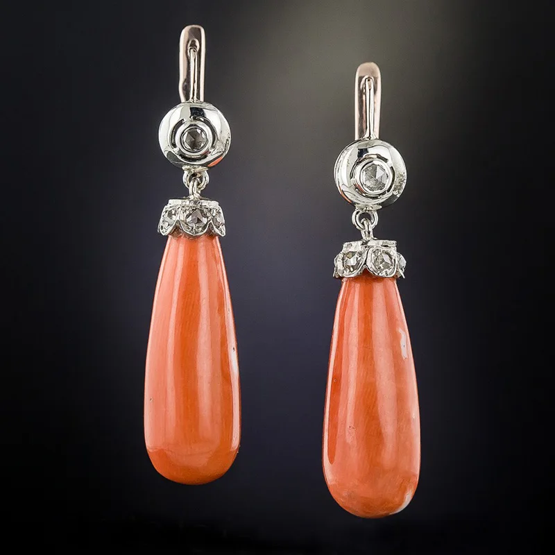 Классические Висячие серьги из красного кораллового камня с фианитом класса ААА, Висячие длинные висячие серьги для женщин, ювелирные изделия в стиле бохо, аксессуары