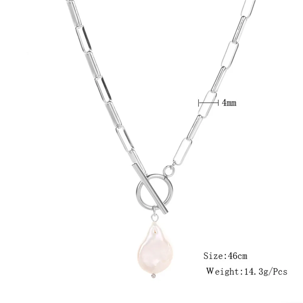 Женская цепочка с зажимом для бумаги, ожерелье из нержавеющей стали с пресноводным жемчугом в стиле барокко