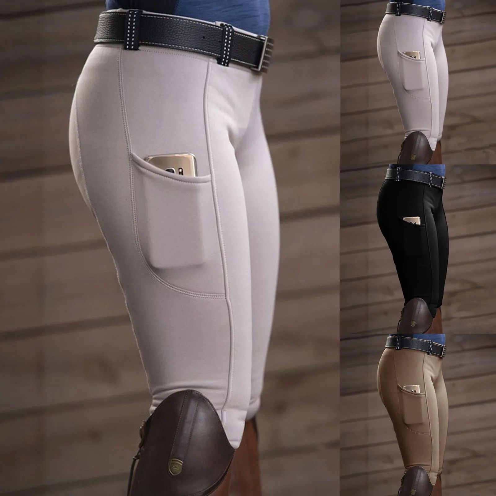 Женские штаны для верховой езды с карманами для телефона, упражнени...